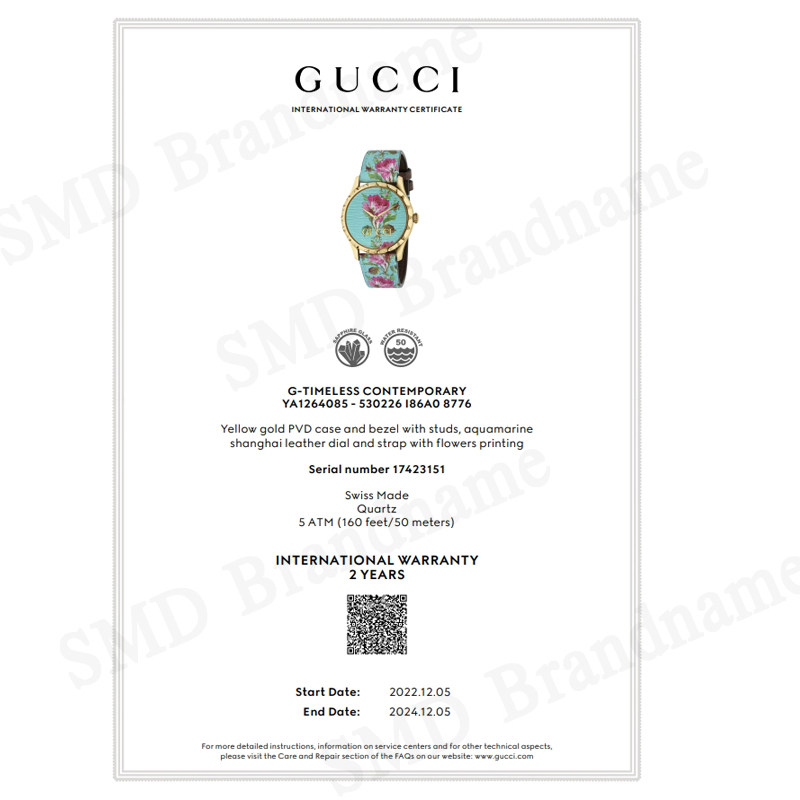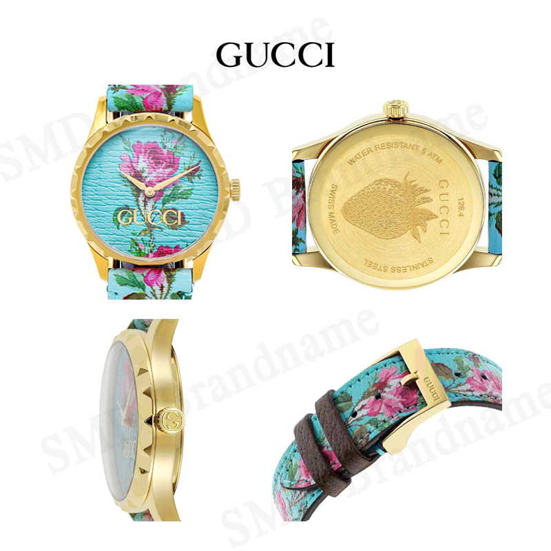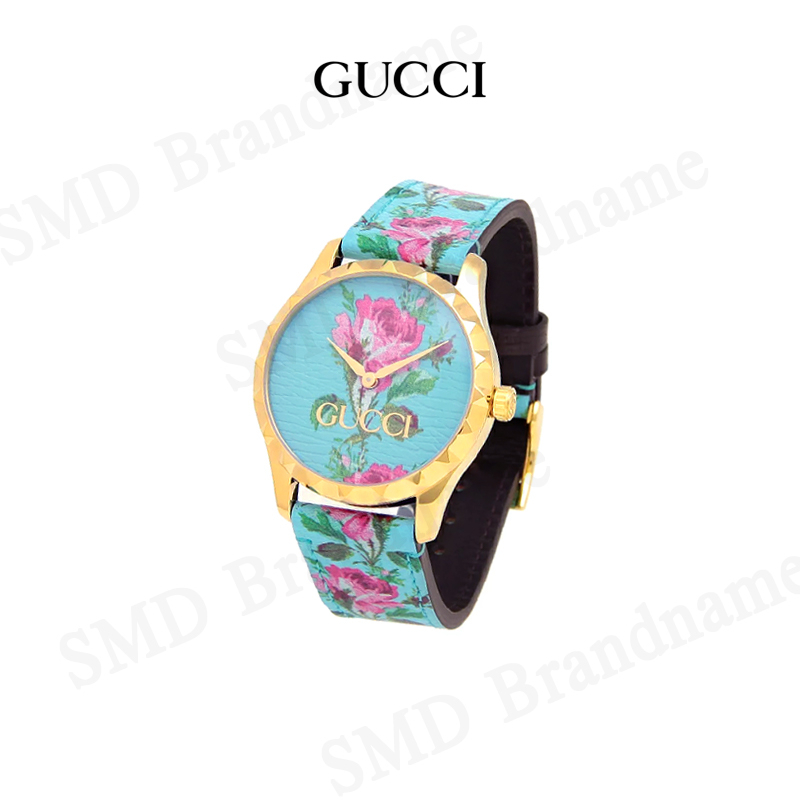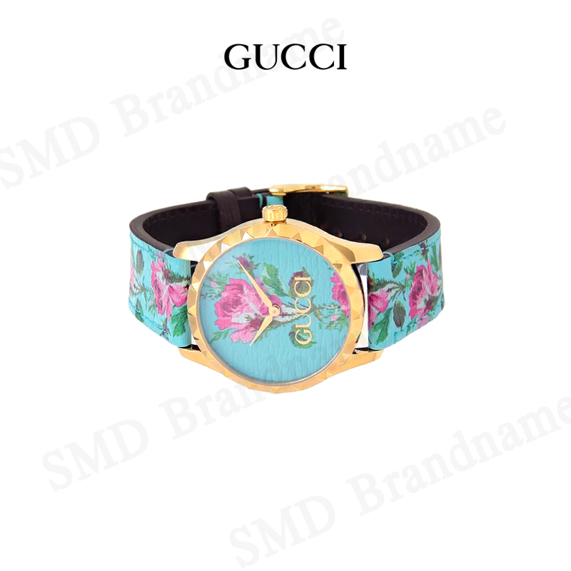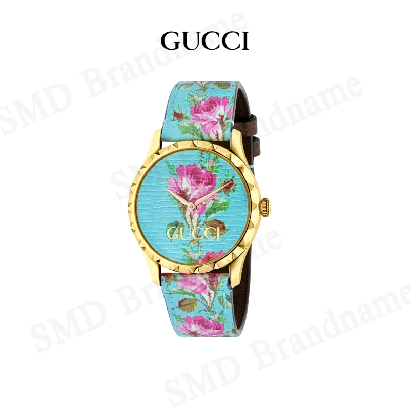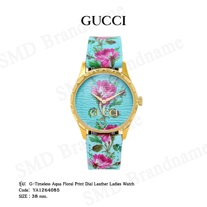 GUCCI นาฬิกาข้อมือ รุ่น G-Timeless Aqua Floral Print Dial Leather Ladies Watch Code: YA1264085