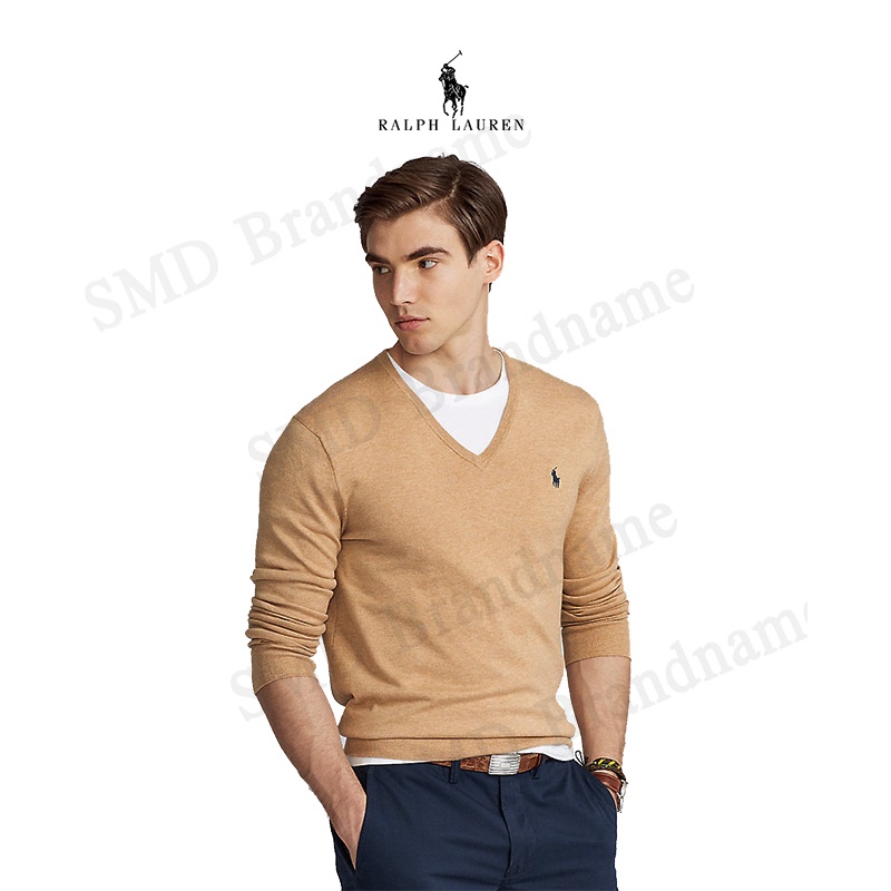 POLO RALPH LAUREN เสื้อสเวตเตอร์ รุ่น Men's Embroidered Logo V-neck Sweater Code: 710744677022