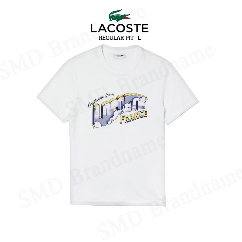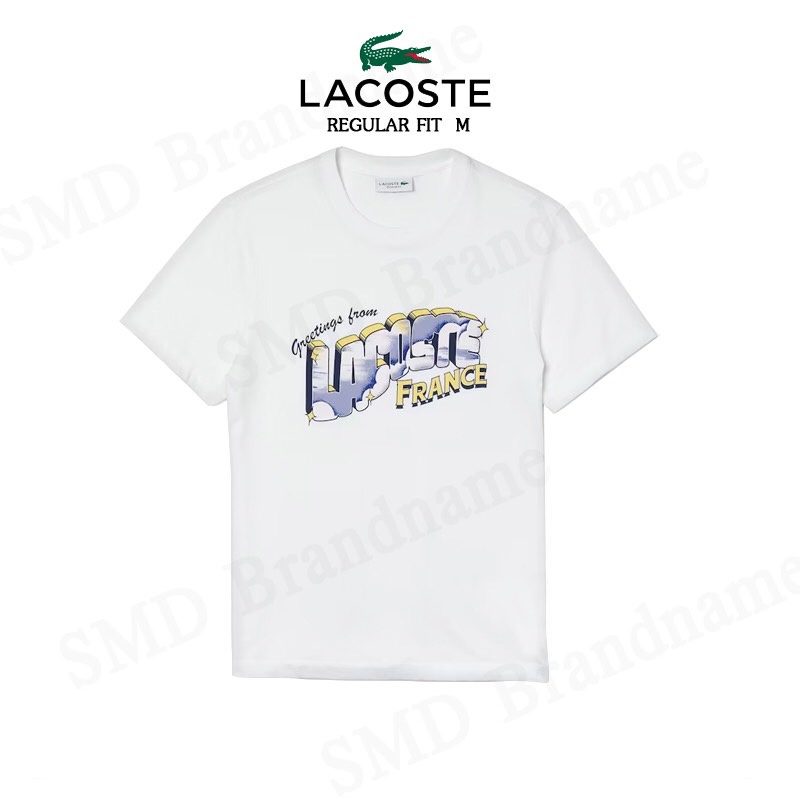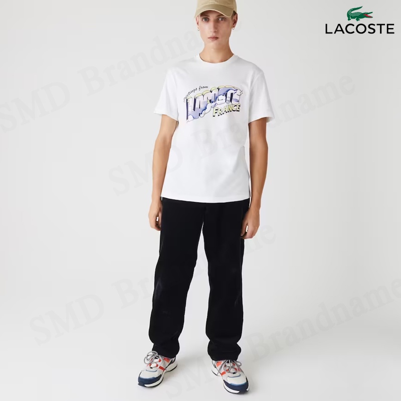 Lacoste เสื้อยืดคอกลมผู้ชาย รุ่น Men’s Graphic Print Regular Fit Cotton T-shirt Code: TH5180 10 001
