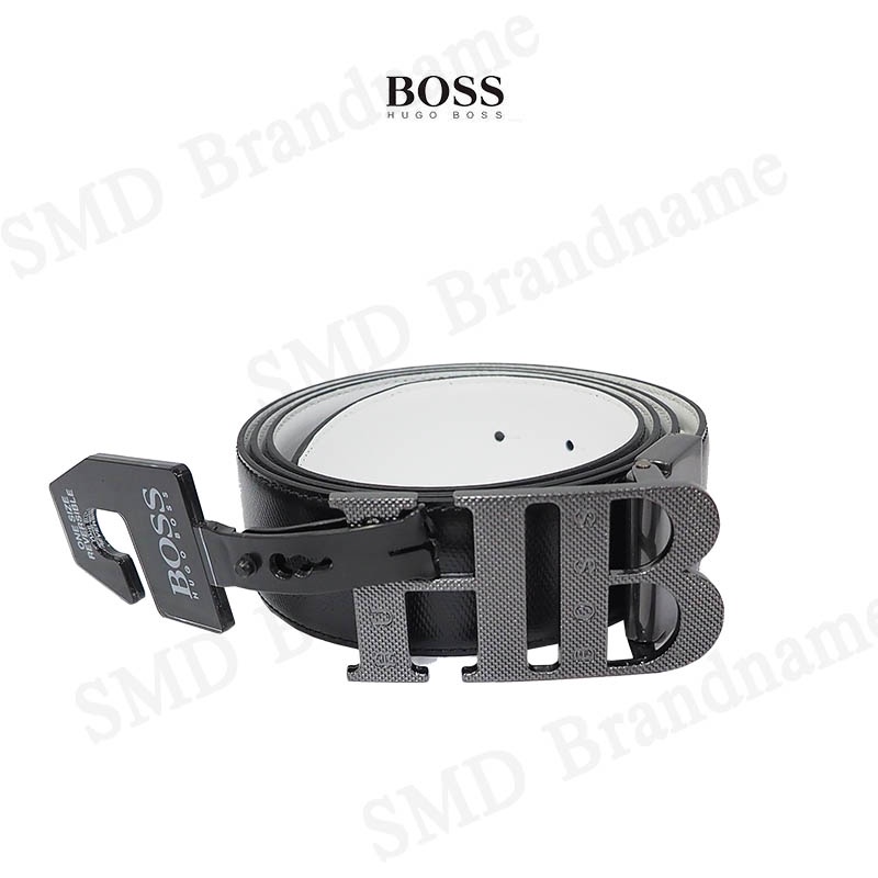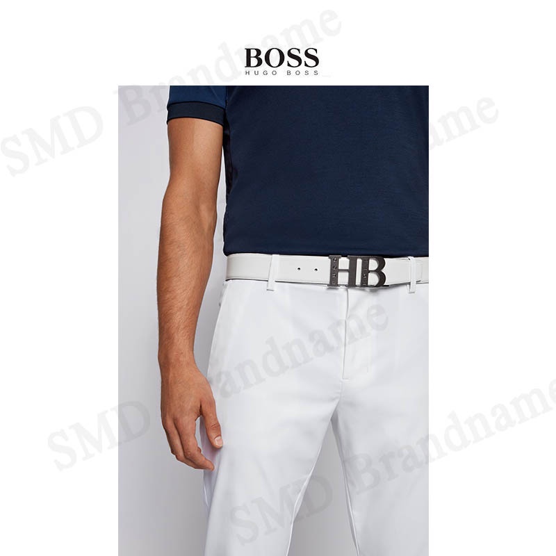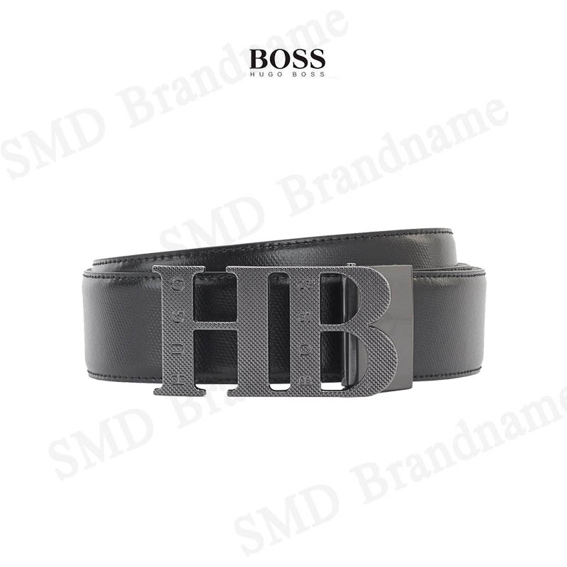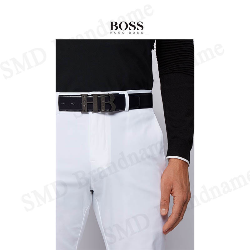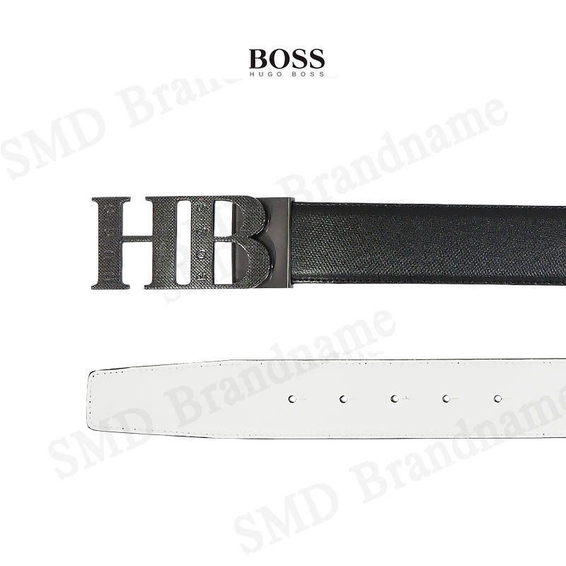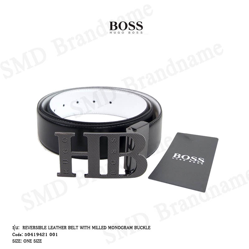 HUGO BOSS เข็มขัดผู้ชาย รุ่น REVERSIBLE LEATHER BELT WITH MILLED MONOGRAM BUCKLE Code: 50419421 001