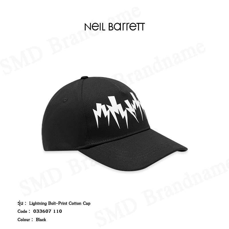 Neil Barrett หมวกแก๊ป รุ่น Lightning Bolt-Print Cotton Cap Code: 033607 110