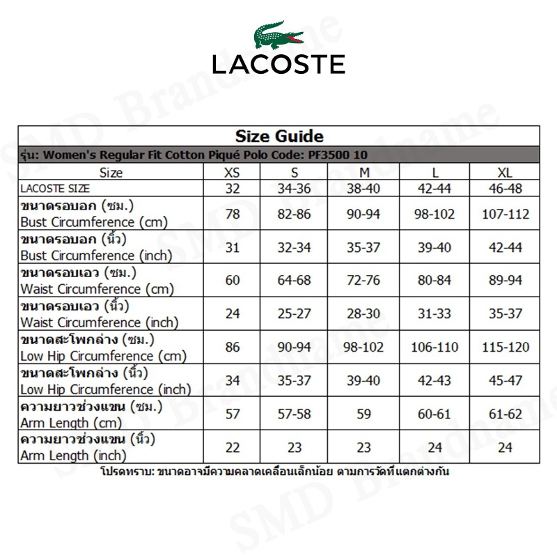 Lacoste เสื้อโปโลหญิง รุ่น Women's Regular Fit Cotton Pique Polo Code: PF3500 10 240