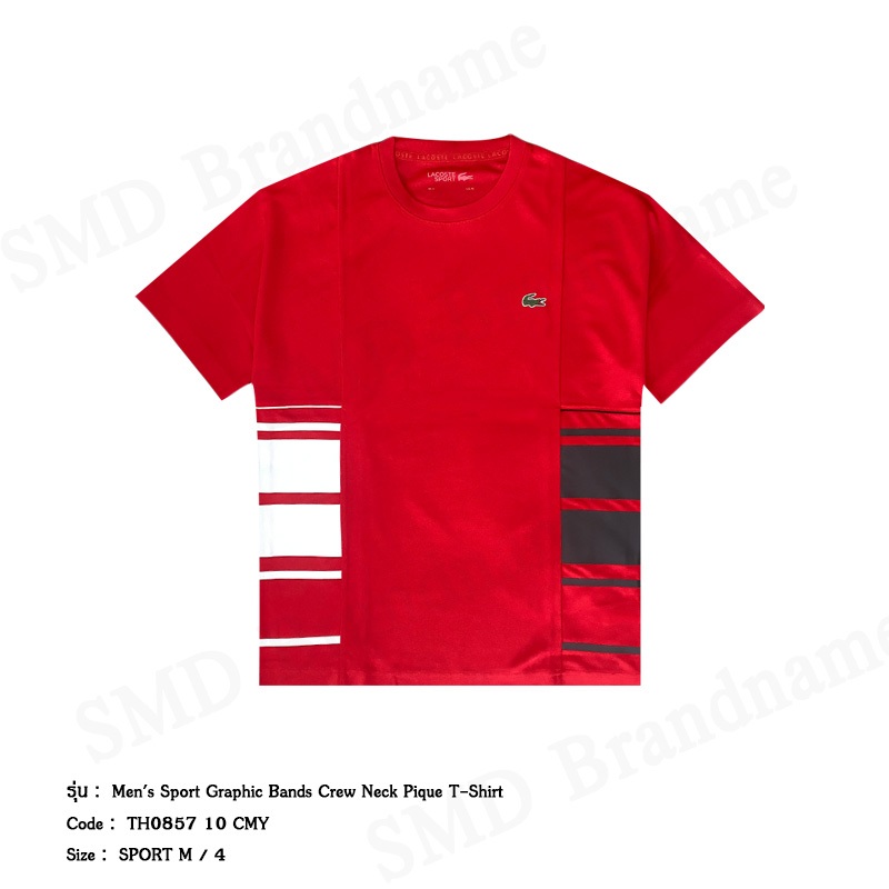 Lacoste เสื้อคอกลม รุ่น Men's Sport Graphic Bands Crew Neck Pique T-Shirt Code:TH0857 10 CMY