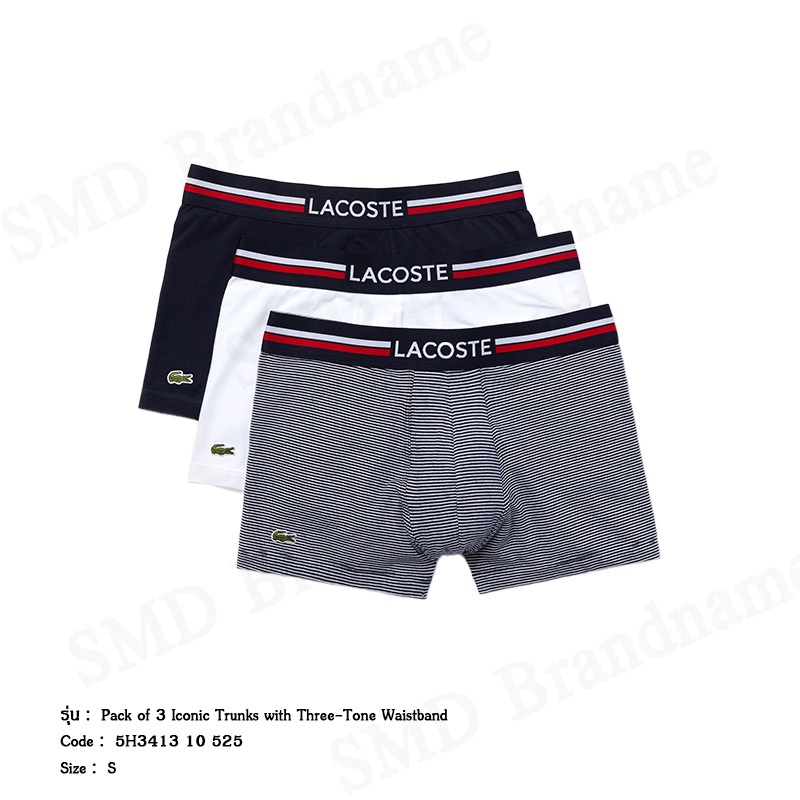 Lacoste กางเกงชั้นในผู้ชาย รุ่น Pack of 3 Iconic Trunks with Three-Tone Waistband Code: 5H3413 10 525