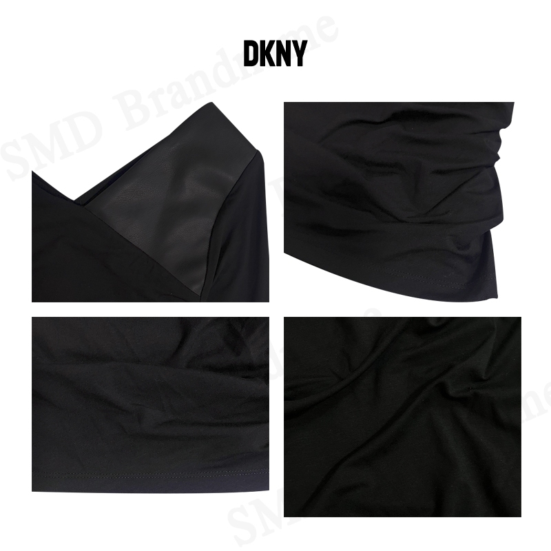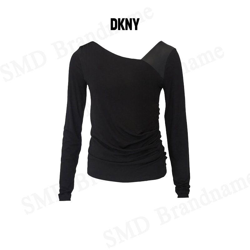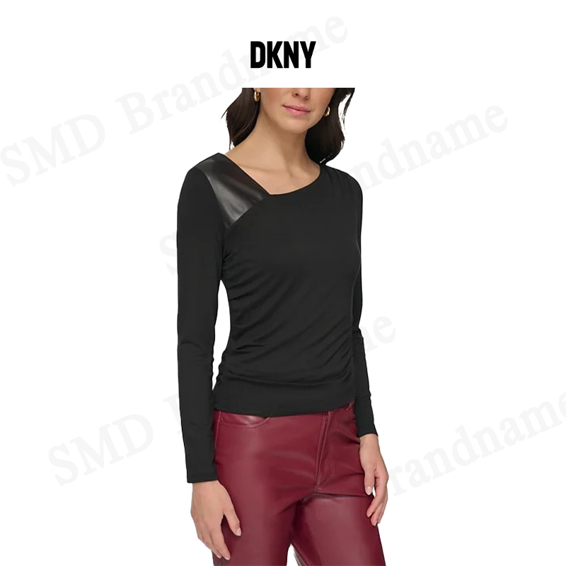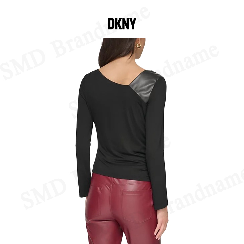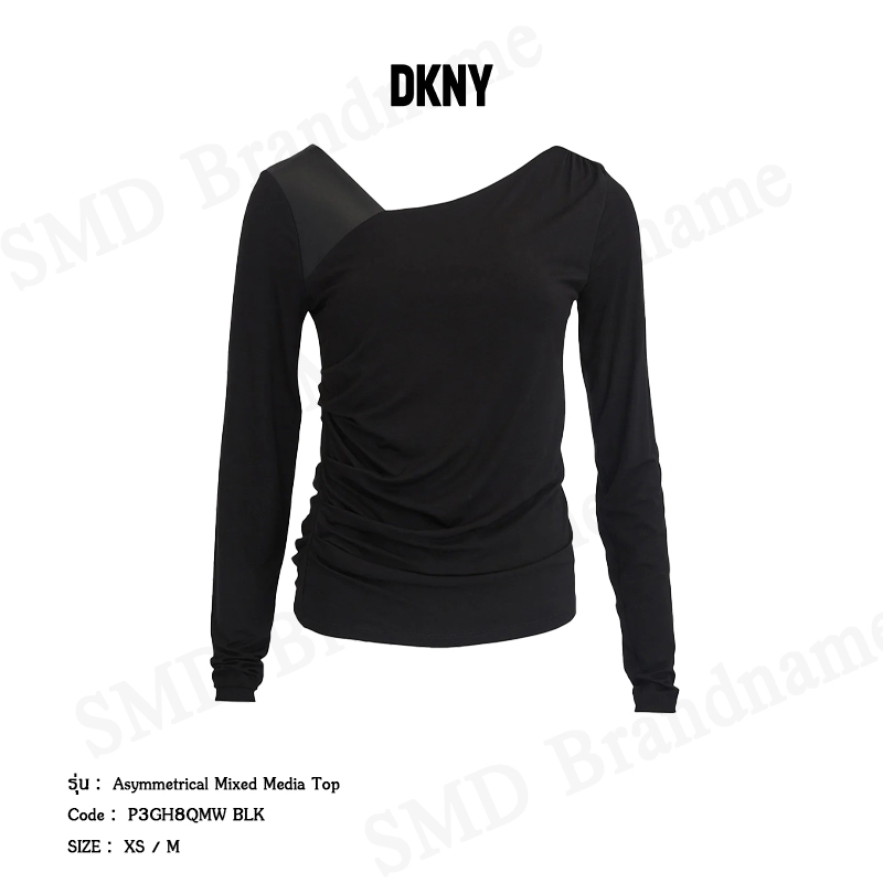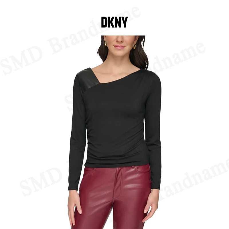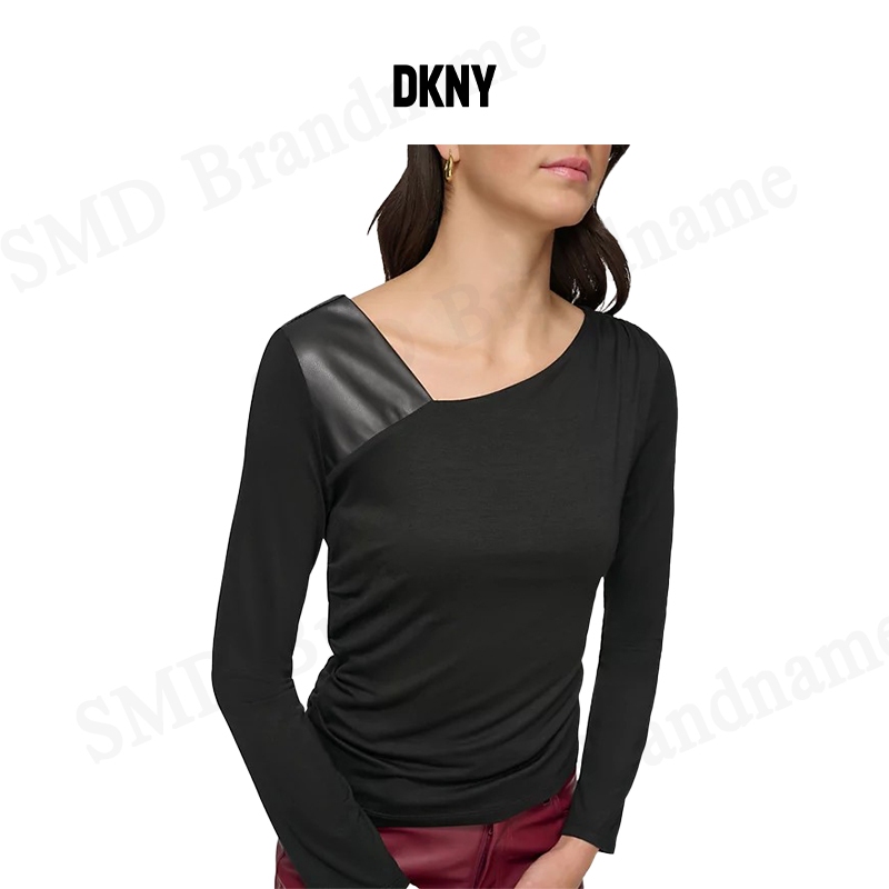 DKNY เสื้อแขนยาวผู้หญิง รุ่น Asymmetrical Mixed Media Top Code: P3GH8QMW BLK