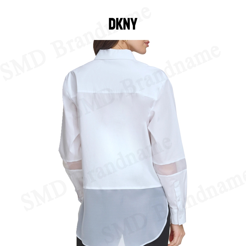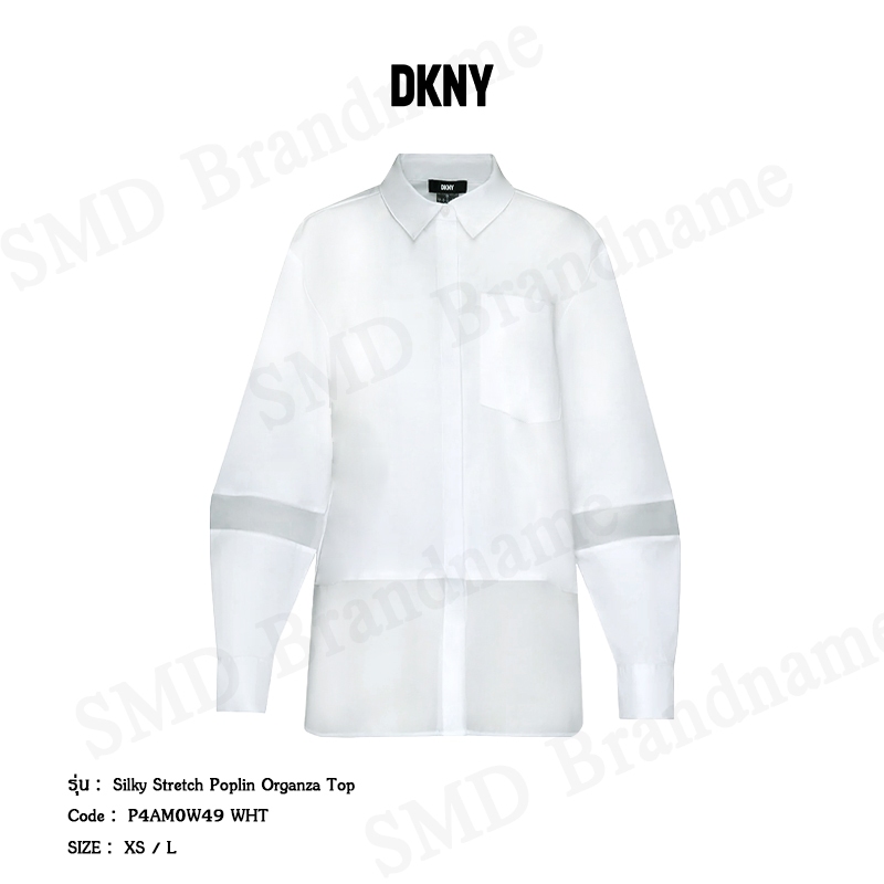 DKNY เสื้อเชิ้ตแขนยาว รุ่น Silky Stretch Poplin Organza Top Code: P4AM0W49 WHT