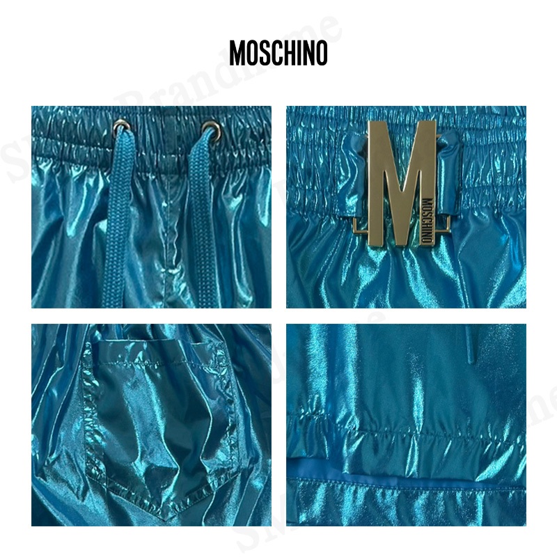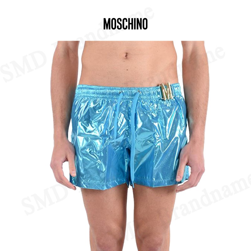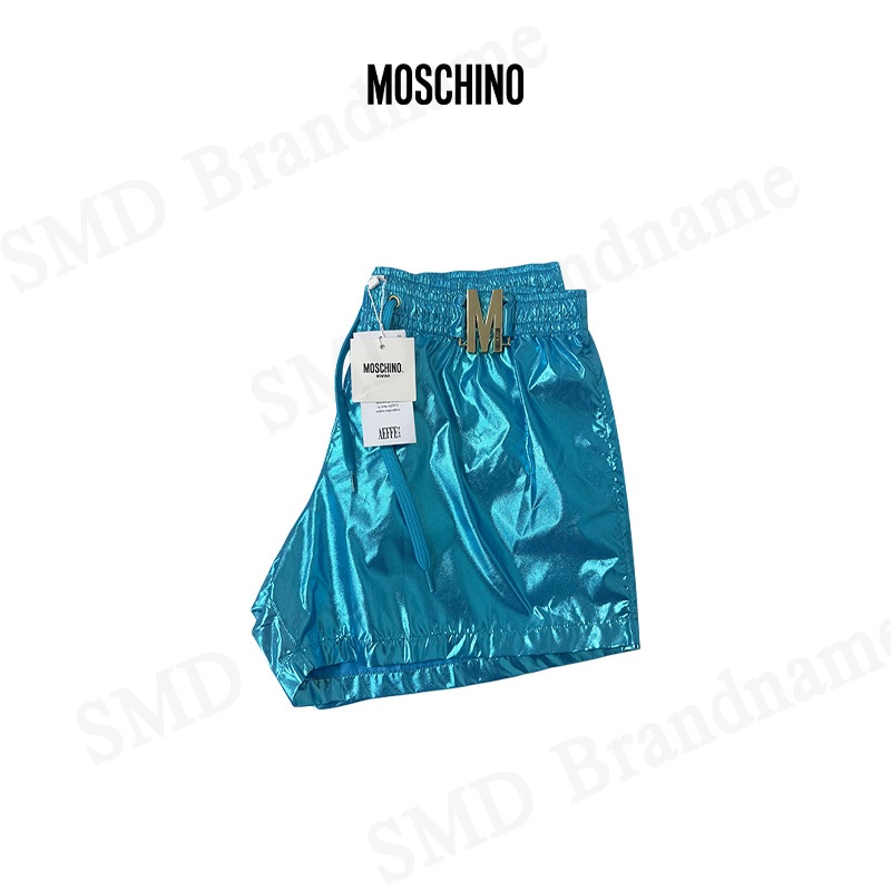 Moschino กางเกงว่ายน้ำผู้ชาย รุ่น Logo-Plaque Metallic Beach Shorts Code: V3A422193040304