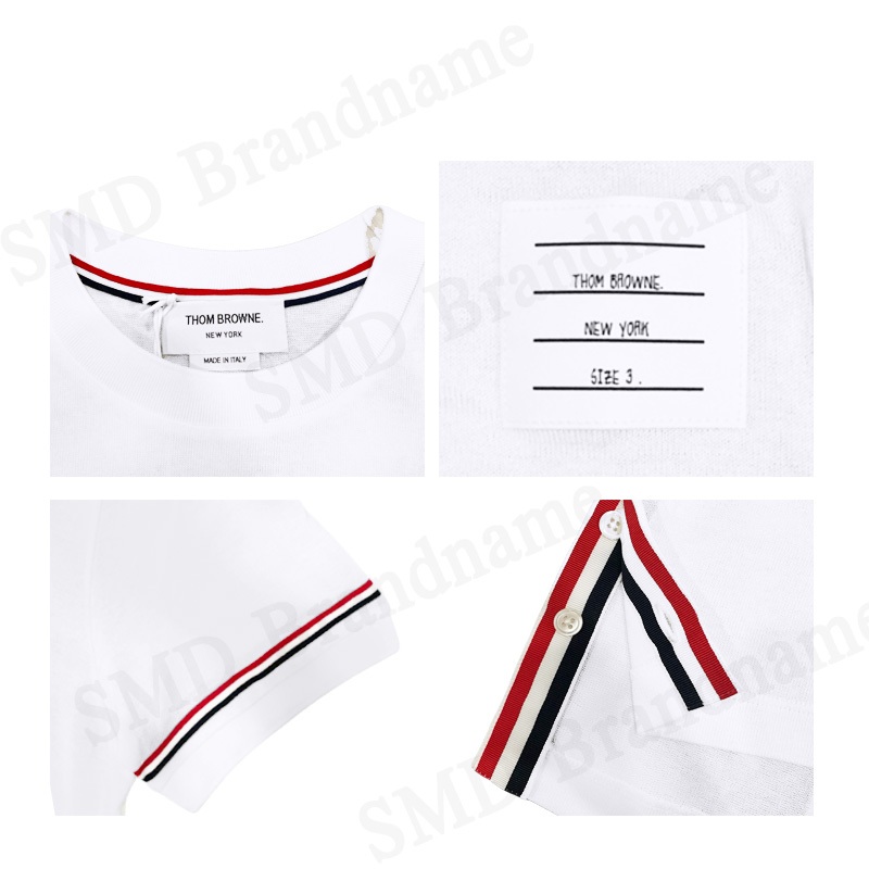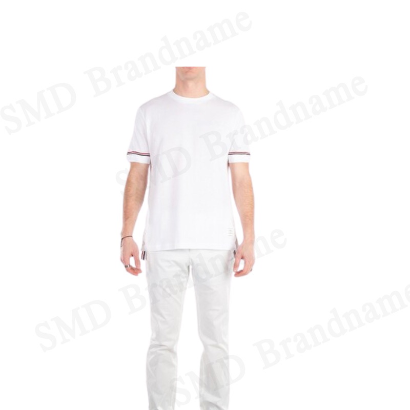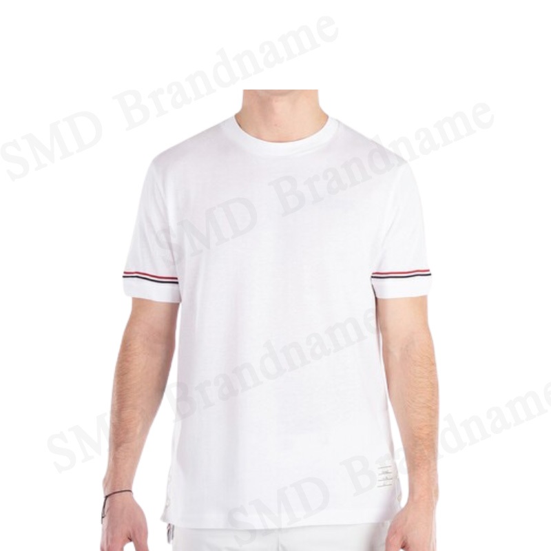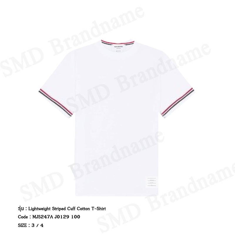 Thom Browne เสื้อยืดคอกลม รุ่น Lightweight Striped Cuff Cotton T-Shirt Code: MJS247A J0129 100