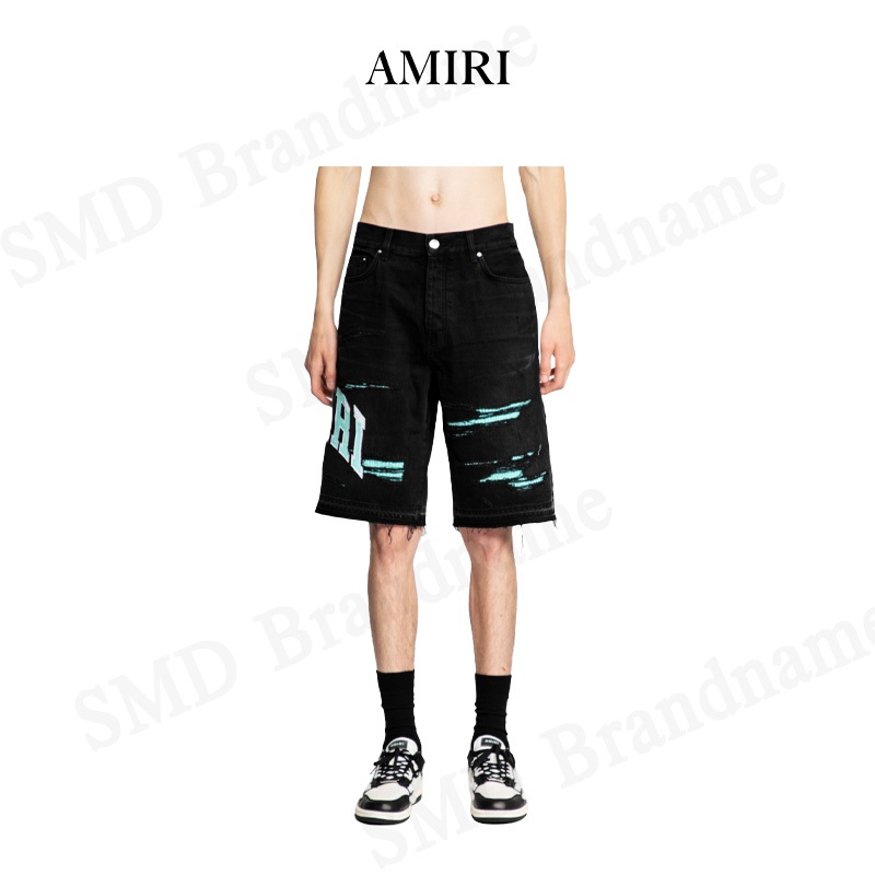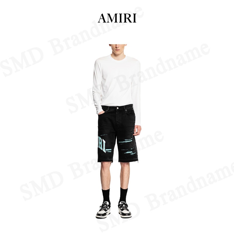Amiri กางเกงยีนส์ขาสั้น รุ่น Logo Embroidered Denim Shorts Code: AMDNSH1013 097