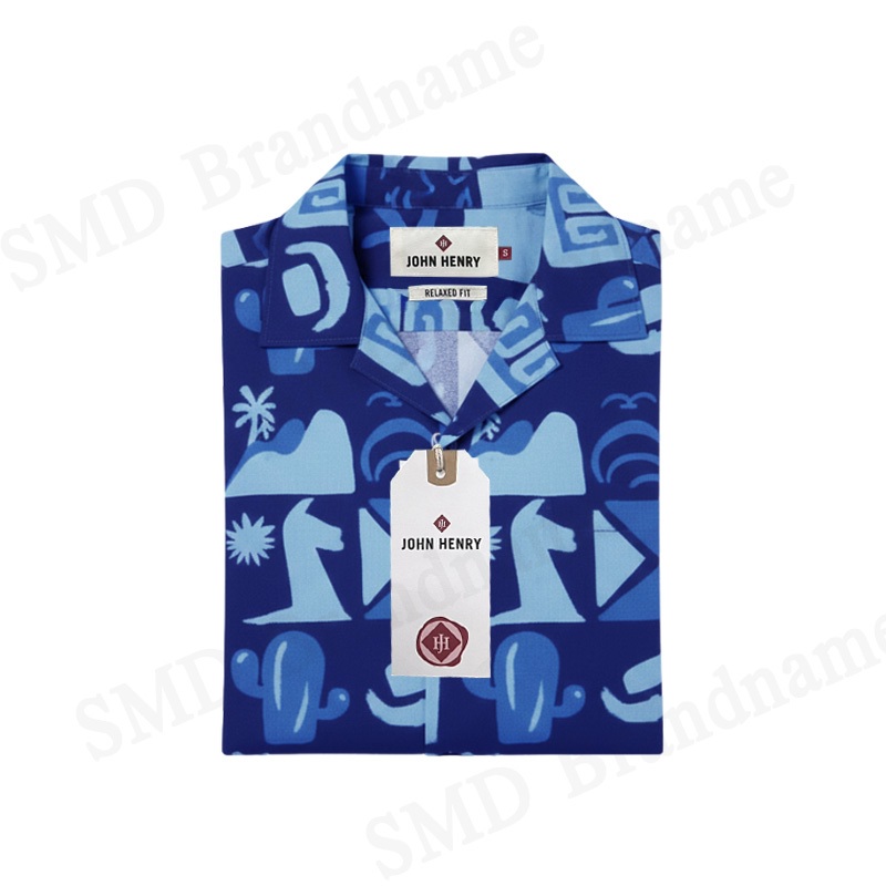 John Henry เสื้อเชิ้ตแขนสั้นผู้ชาย รุ่น Men's Short Sleeves Relaxed Fit Shirt (Navy) Code: JH S225MSSRL02