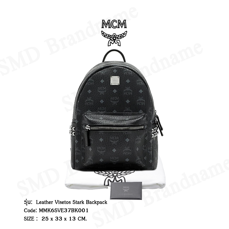 MCM กระเป๋าสะพายหนังสีดำ รุ่น Leather Visetos Stark Backpack Code : MMK6SVE37BK001