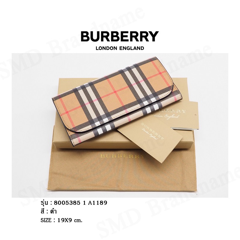 Burberry กระเป๋าสตางค์ผู้หญิงใบยาว size เล็ก รุ่น HERON CHECK WALLET Code:8005385 1 A1189