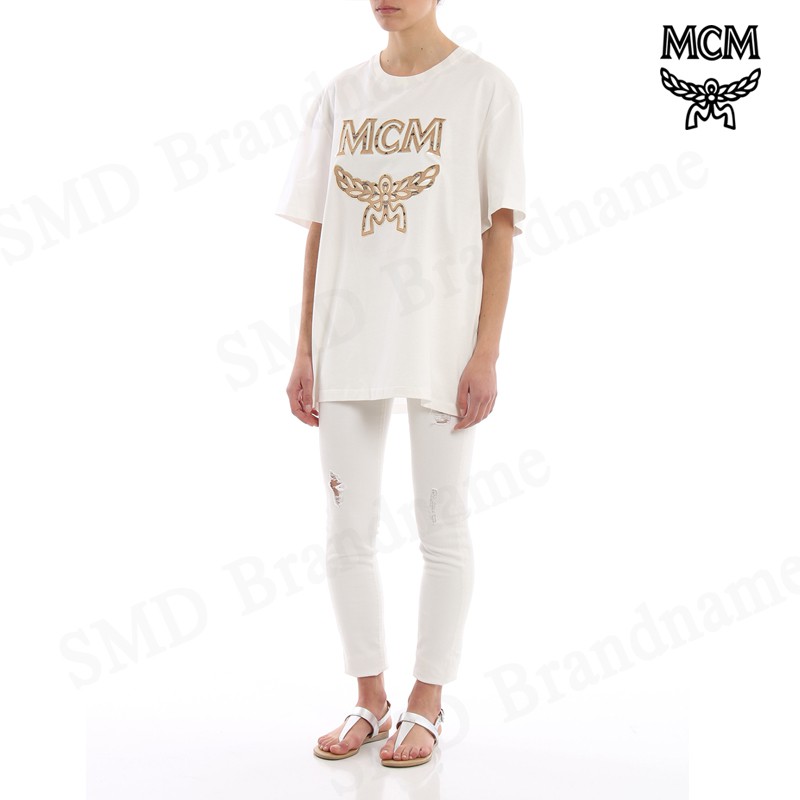 MCM เสื้อยืดสีขาว รุ่น Men's Logo T-Shirt Code: MHT 8SMM10 WI00M