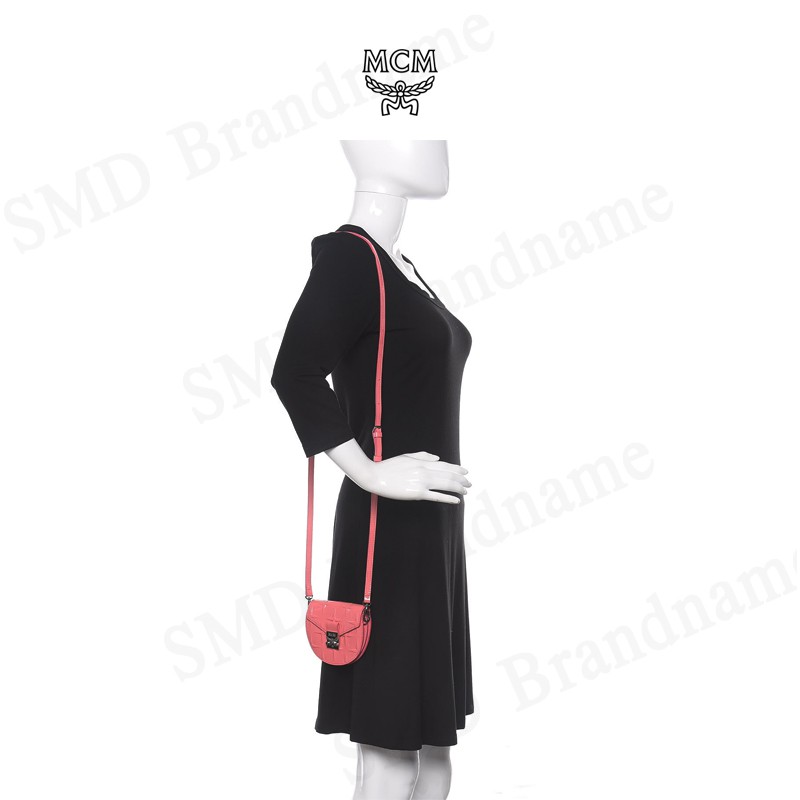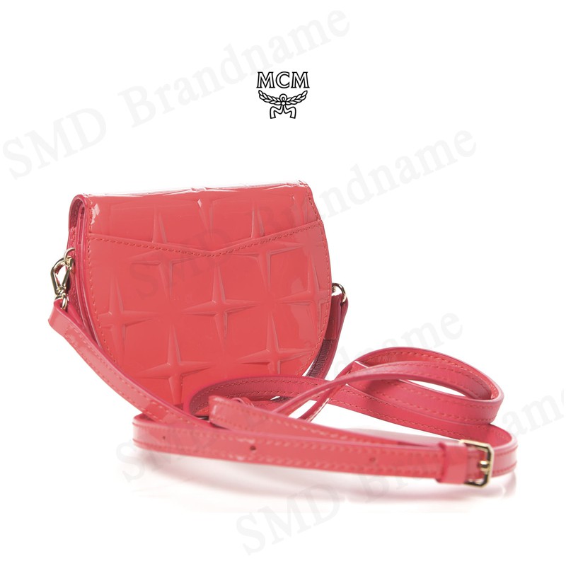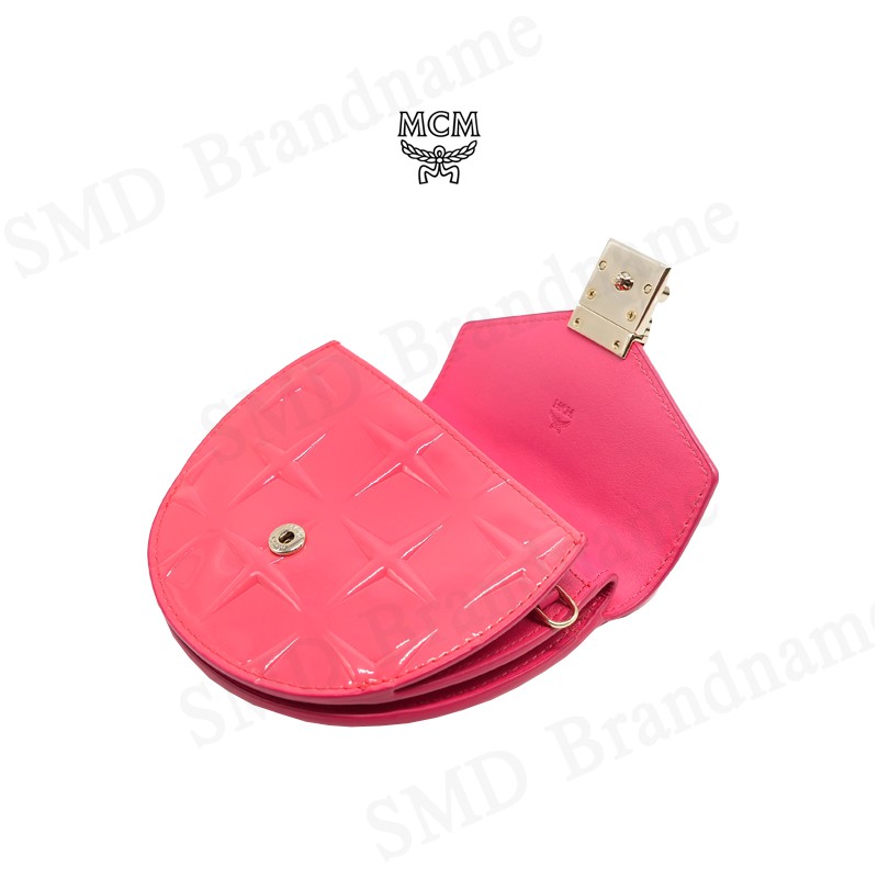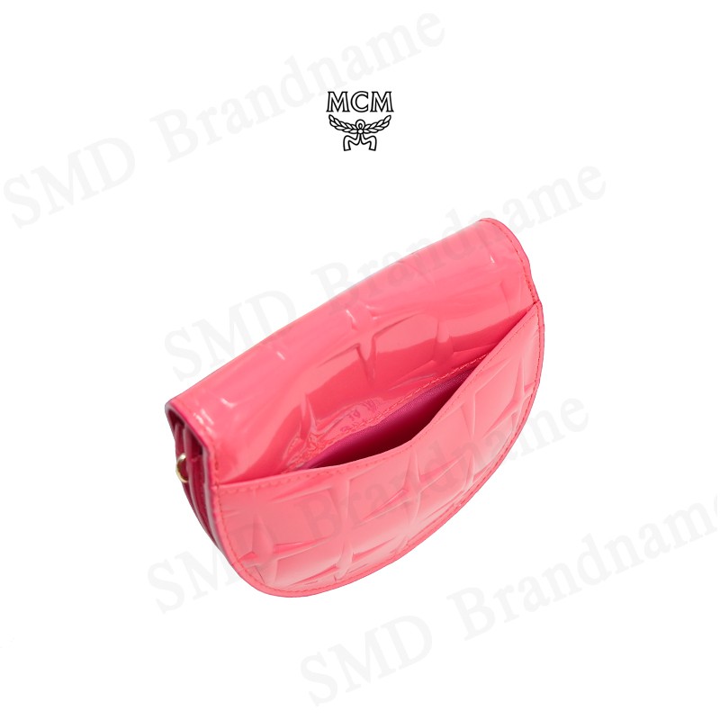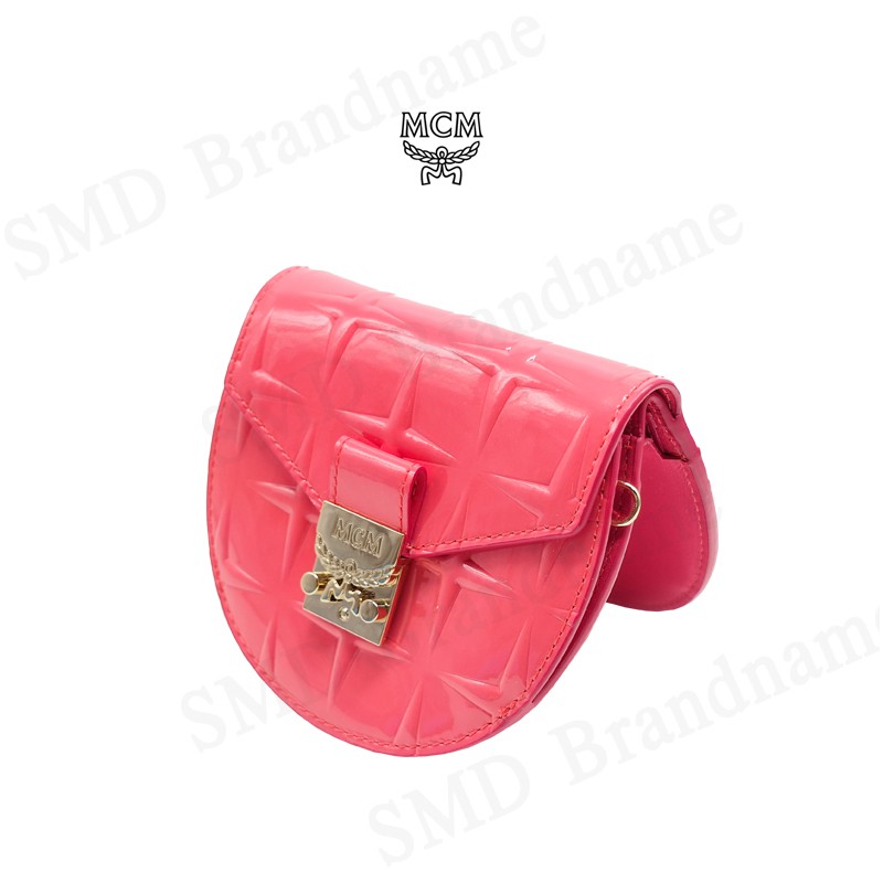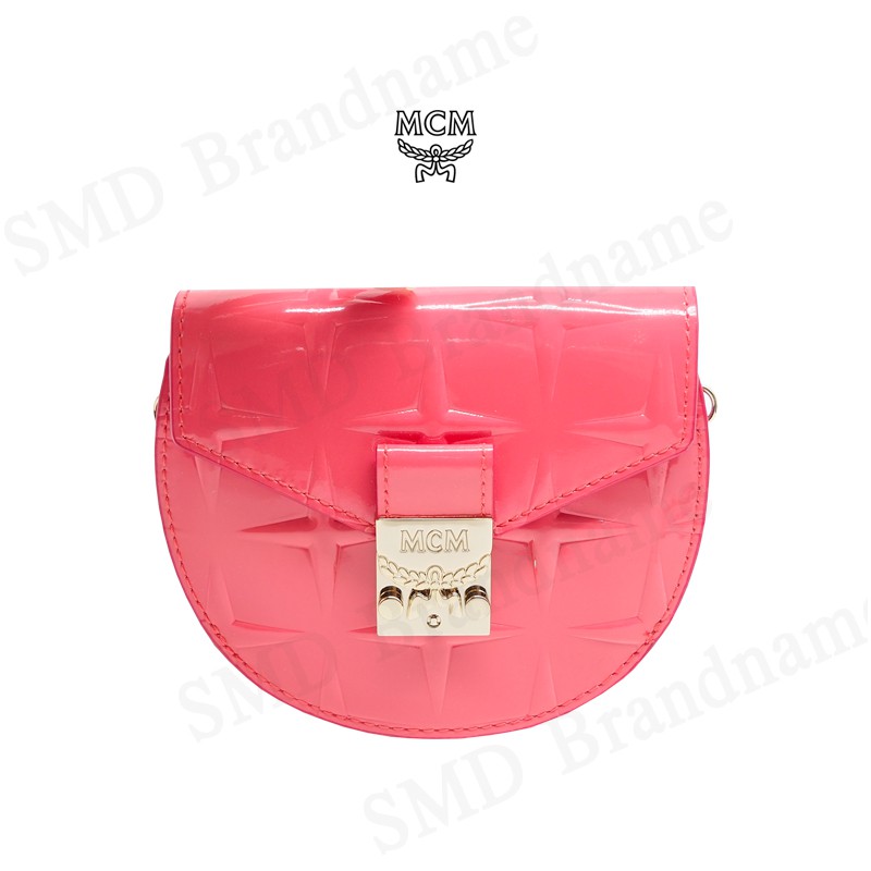 MCM กระเป๋าสตางค์มีสายสะพาย รุ่น Diamond Patent Patricia Round Crossbody Bag Code: MYAASPA02QE001