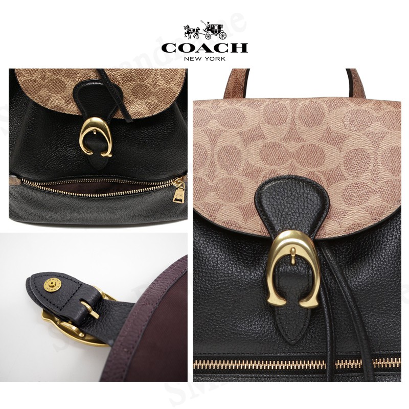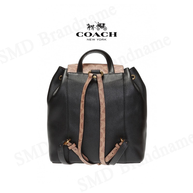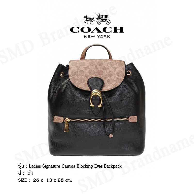 COACH กระเป๋าเป้สะพายหลังสีดำผู้หญิงลายซิกเนเจอร์ รุ่น Ladies Signature Canvas Blocking Evie Backpack Code: 75564 B4O