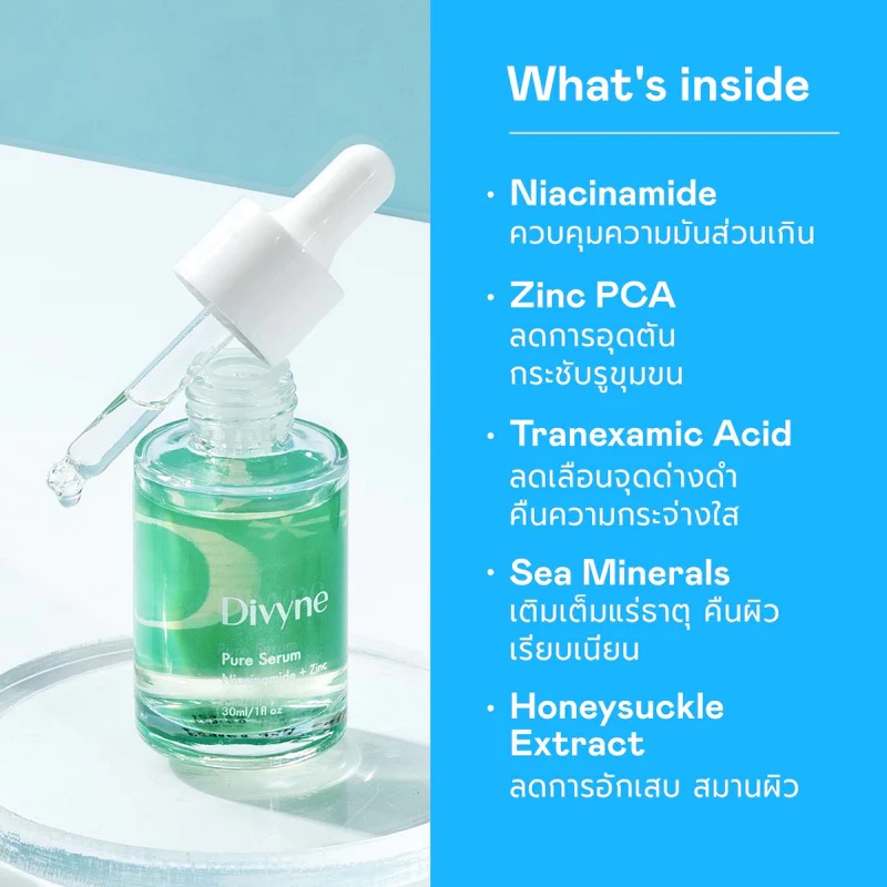 DIVYNE Pure Serum Niacinamide + Zinc 30ml เซรั่มสิว กระชับรูขุมขน หน้ามัน