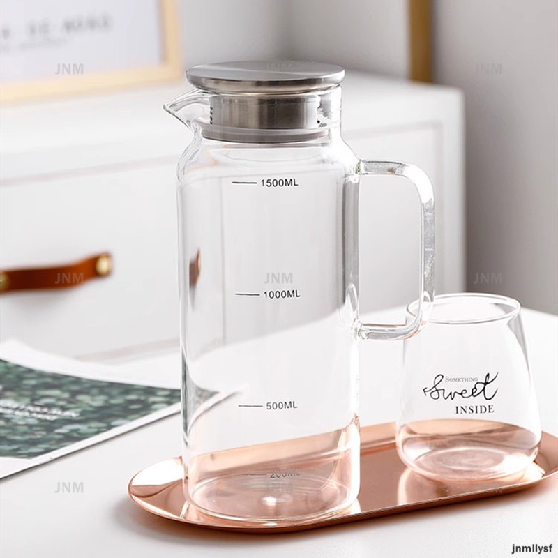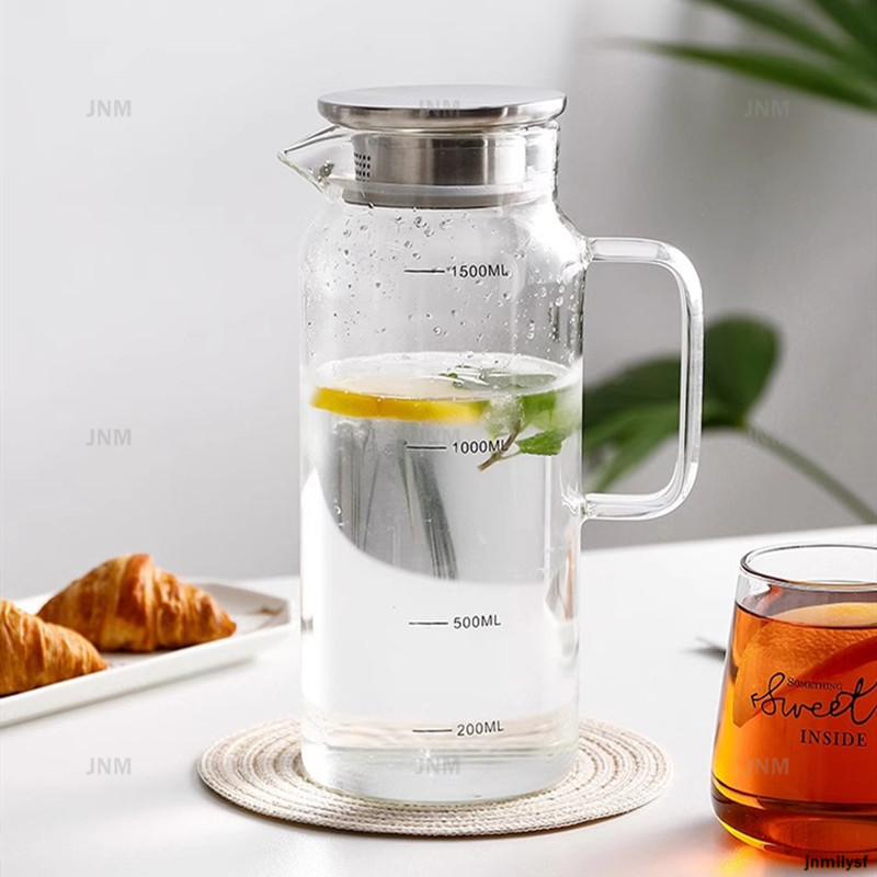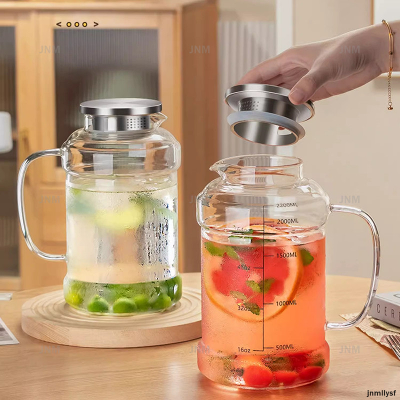 2200มล ความจุขนาดใหญ่กาต้มน้ําแก้วครัวเรือนทนความร้อนเหยือกน้ําแก้วกาน้ําชาน้ําผลไม้หม้อใสเหยือกแก้ว