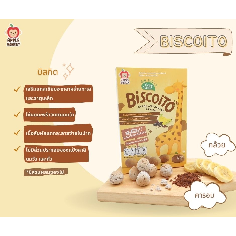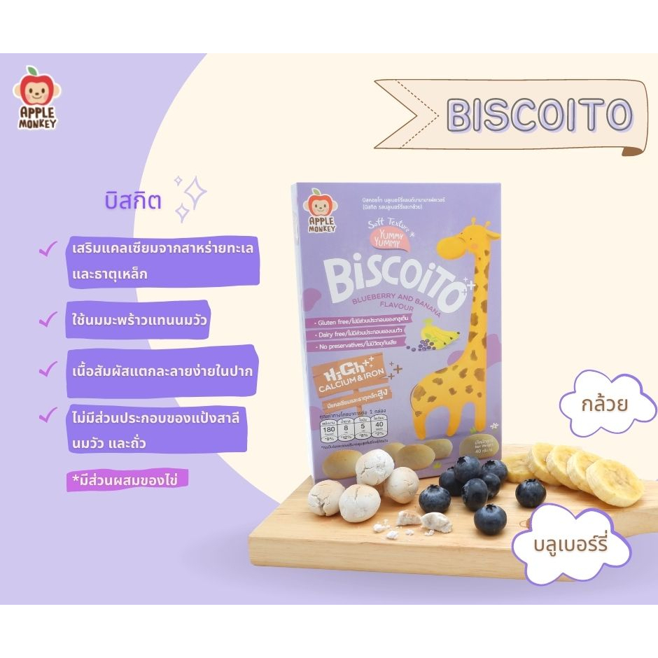 APPLE MONKEY บิสกิตมีแคลเซียม Calcium ขนมเด็ก อายุ 1 ขวบขึ้นไป