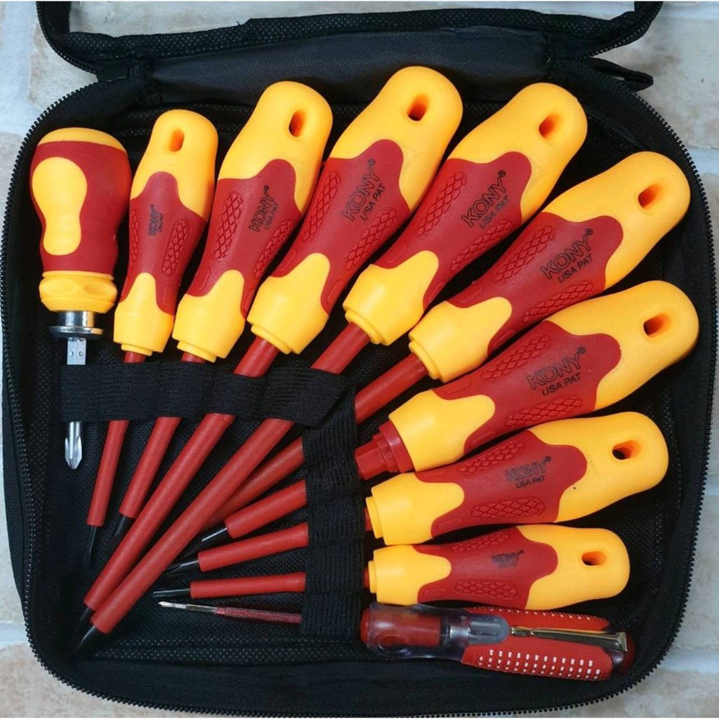 ไขควงชุด ไขควงกันไฟ ไขควงช่างไฟ ไขควงหุ้มฉนวน 10 ตัว/ชุด สินค้าพร้อมส่ง