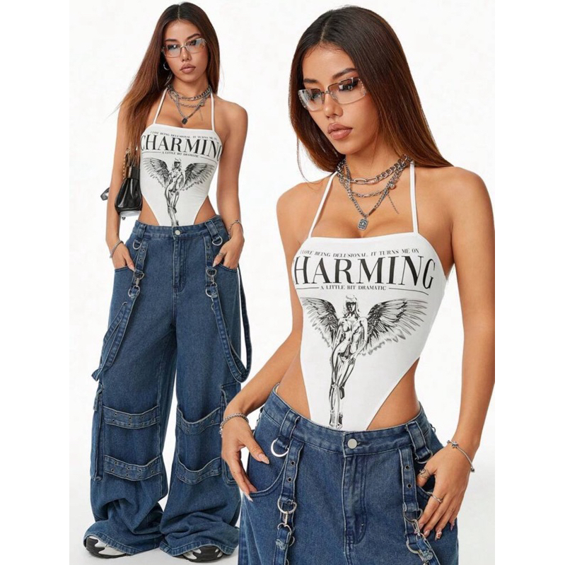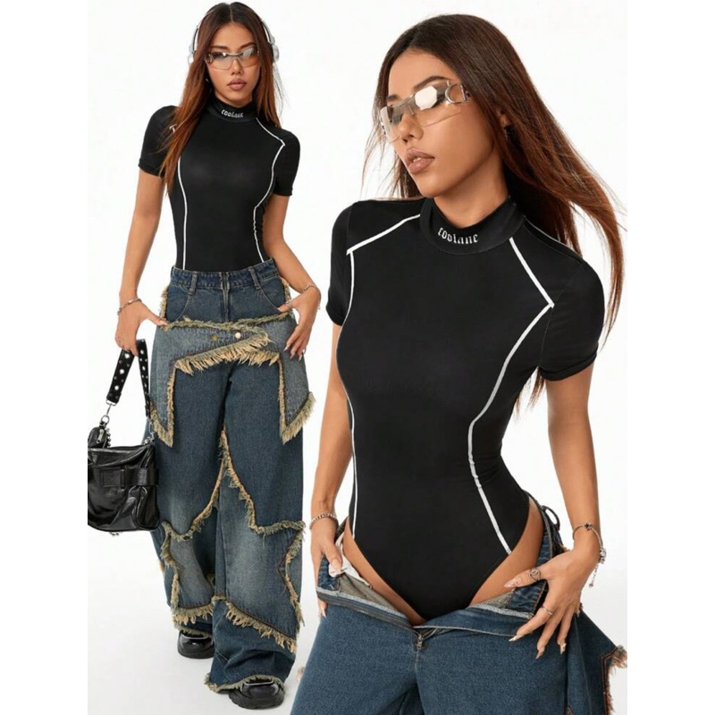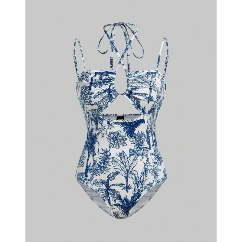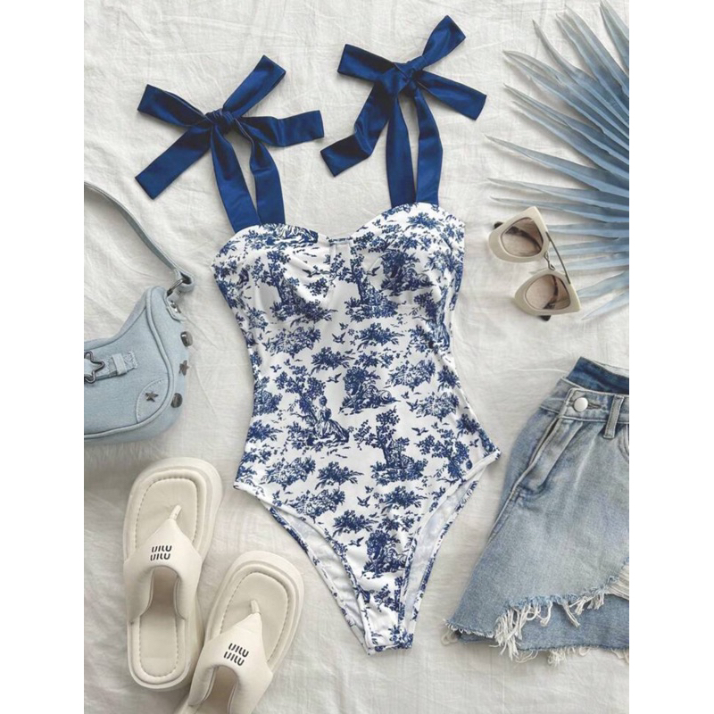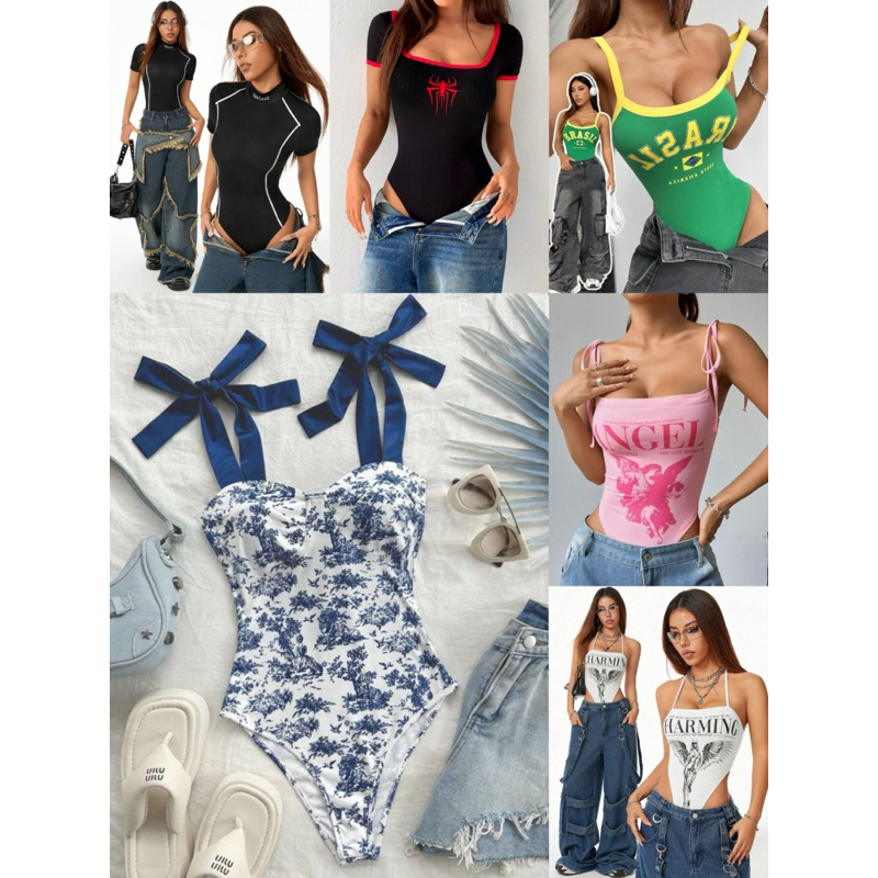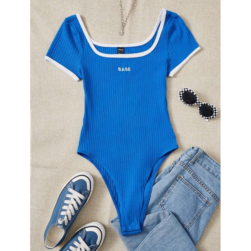ชุดบอดี้สูท บล็อกสีฟ้าและสีขาวทันสมัยสำหรับวันหยุดพักผ่อนที่ชายหาด Pre-order