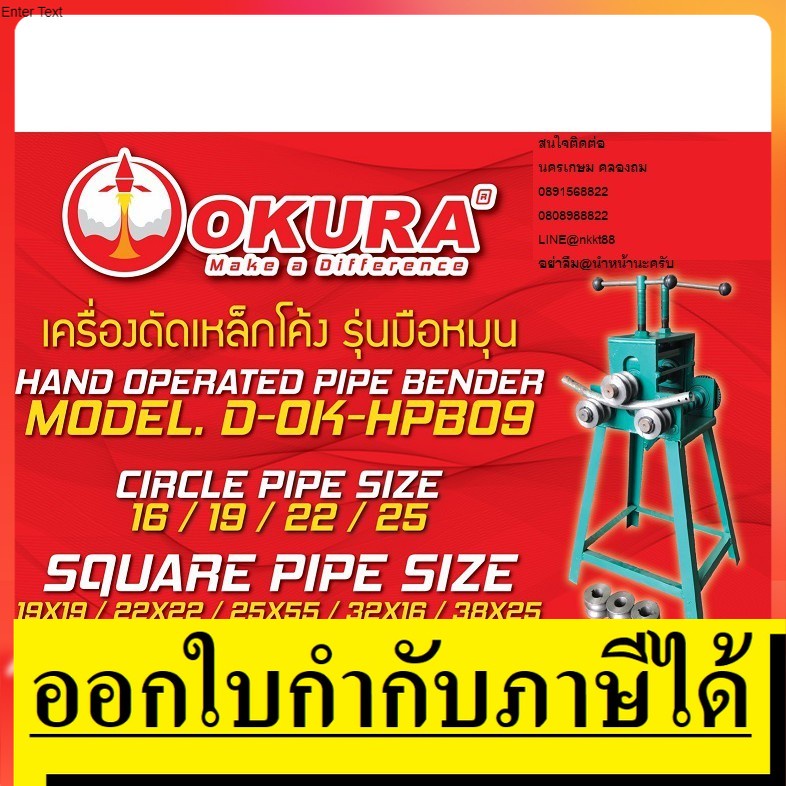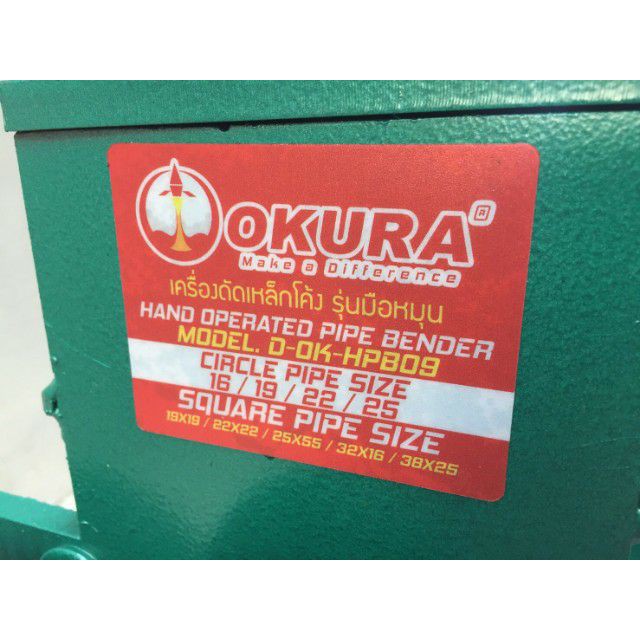 D-OK-HPB09 เครื่องดัดท่อดัดเหล็ก โค้ง มือหมุน ได้ถึง 25mm OKURA สินค้าเทเ้รับประกันจากผู้เเทนจำหน่าย