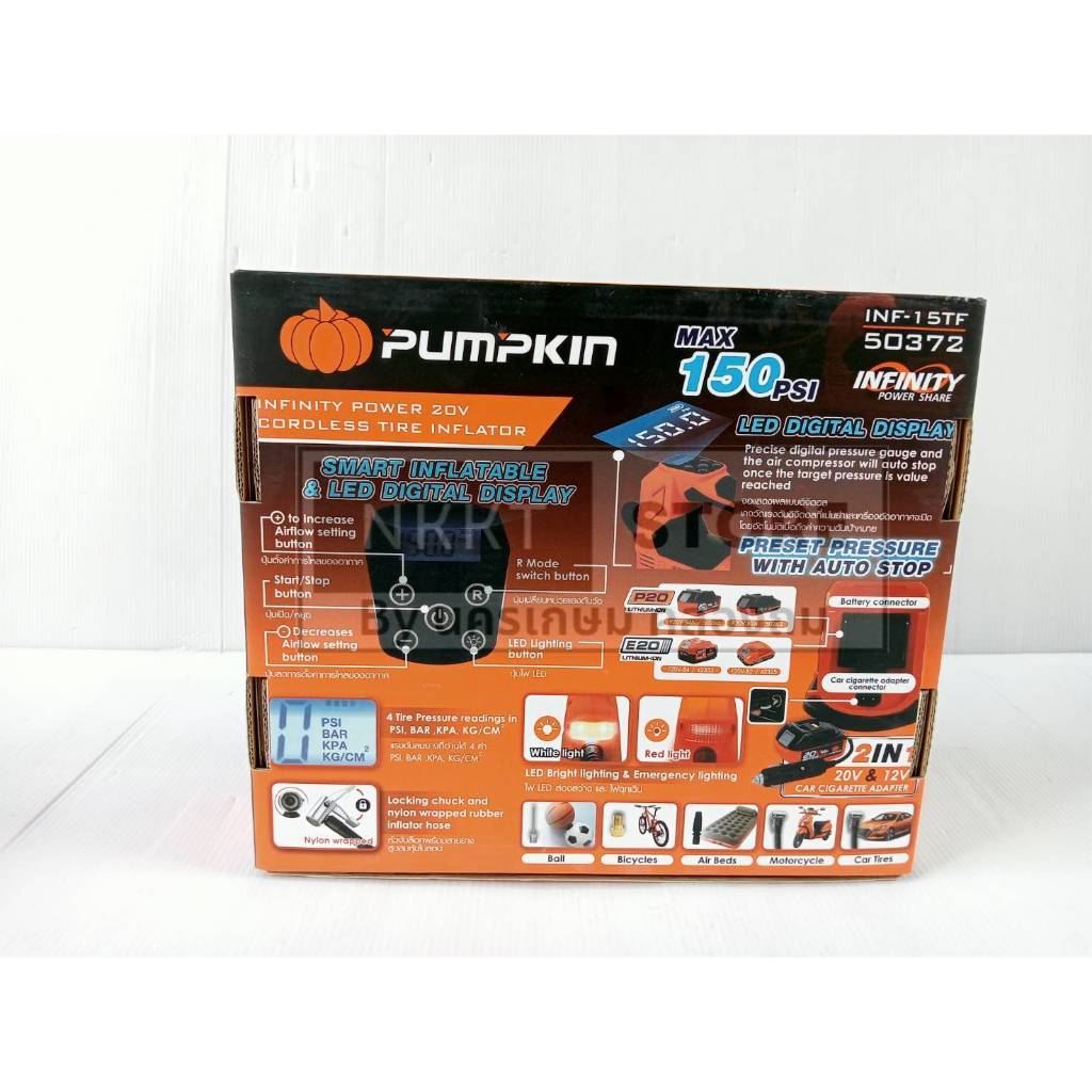 มีตัวเลือก 150Psi PUMPKIN เครื่องสูบลมยางไร้สาย 20V INF-15TF (50372) แถมสายชาร์จในรถยนต์ (12V) เครื่องเปล่าไม่รวมแบต