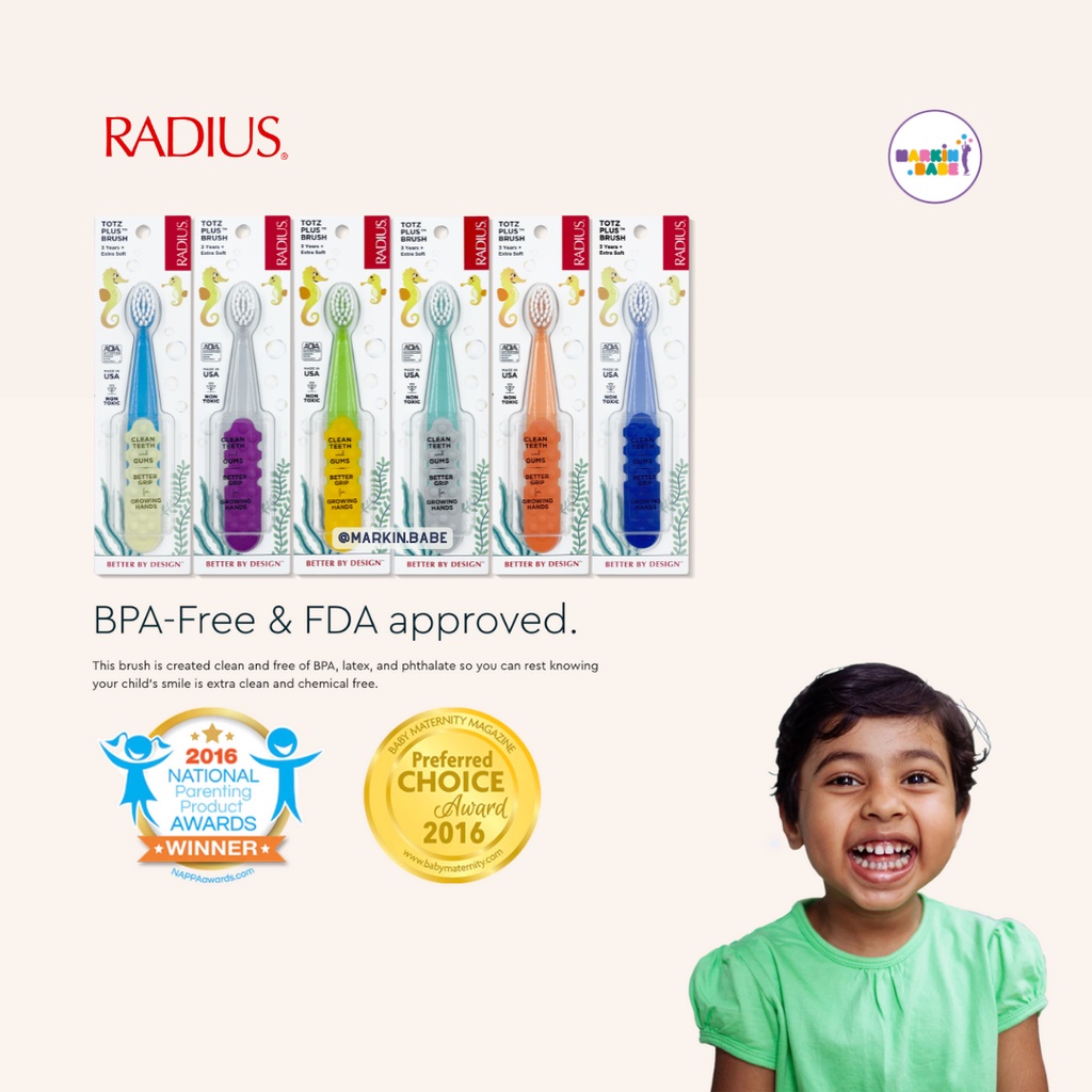 RADIUS TOTZ PLUS 3Y+ แปรงสีฟันสำหรับเด็ก3ปีขึ้นไป ผลิตและนำเข้าจาก USA 🇺🇸 ออแกนิก ขนนุ่มไม่บาดเหงือก I MARKIN.Babe