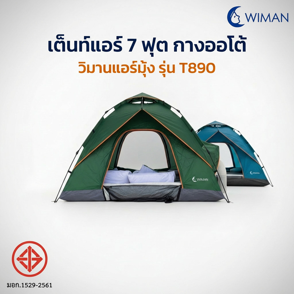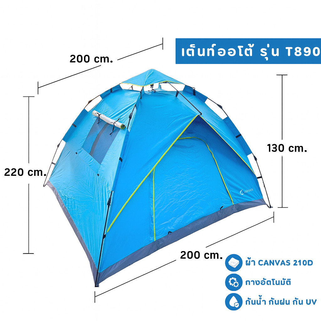 เต็นท์แอร์ 7 ฟุต มีช่องวางแอร์ เต็นท์แอร์ออโต้ ขนาด 220x200 ซม. กันน้ำ 1500 mm กางง่ายใน 10 วินาที