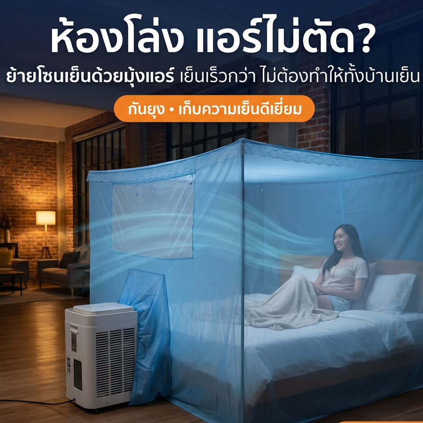 แอร์ 9000 BTU วิมานแอร์ พร้อมมุ้งแอร์สีฟ้า ประหยัดไฟ เย็นสบายทั้งคืน