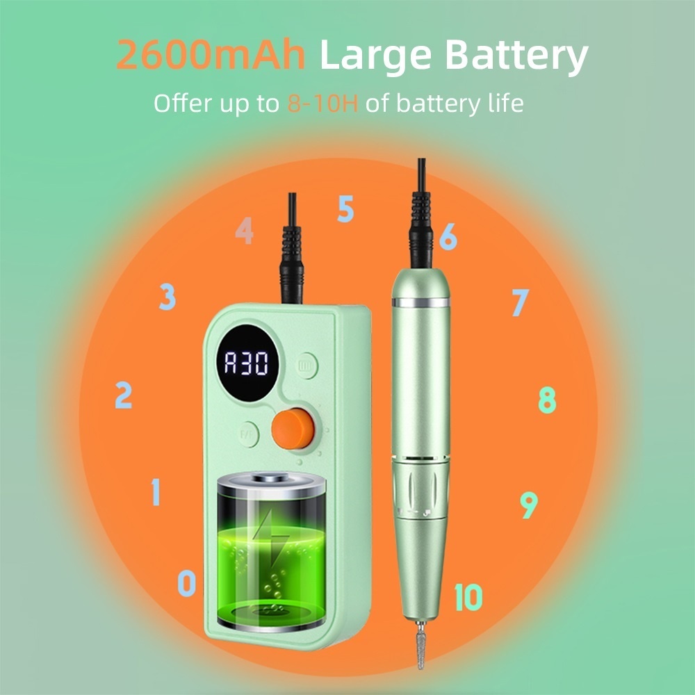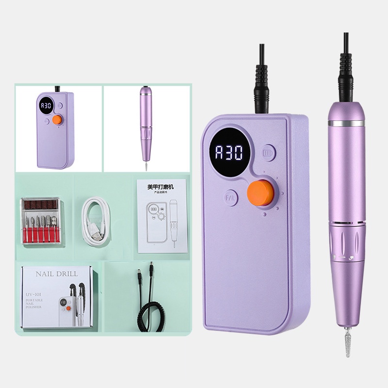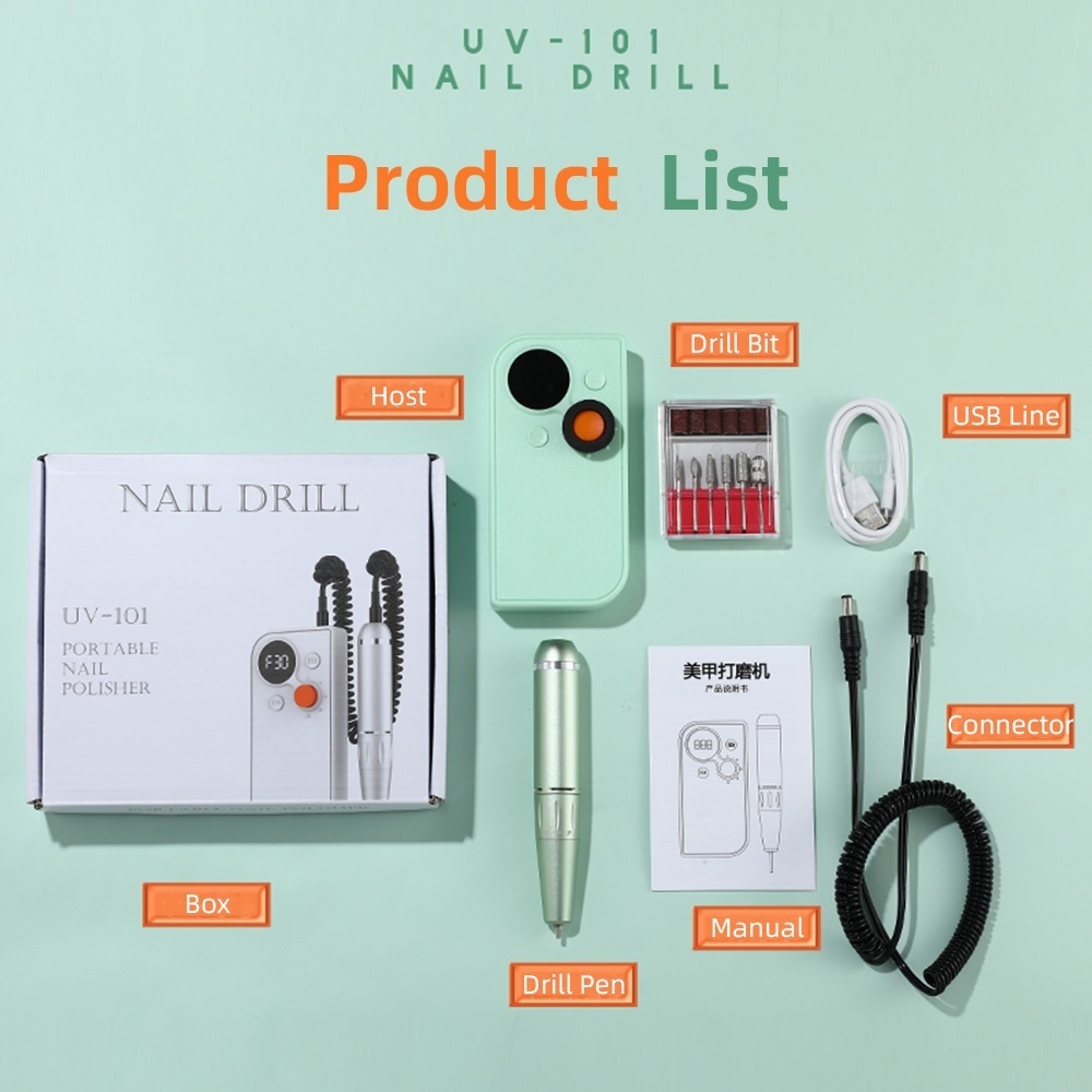เครื่องขัดเล็บ UV101 เครื่องขัดไร้สายที่ปรับความเร็วได้ 30000 รอบต่อนาทีเครื่องกําจัดเล็บเสียงด้านล่างเครื่องบด