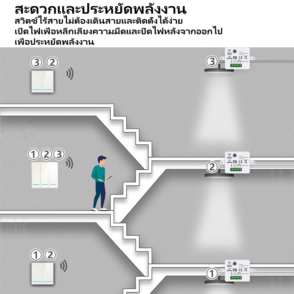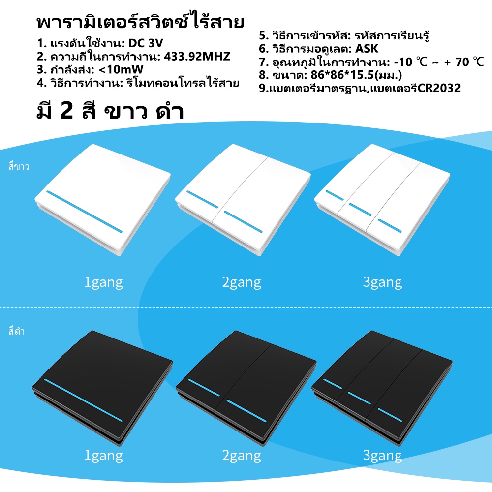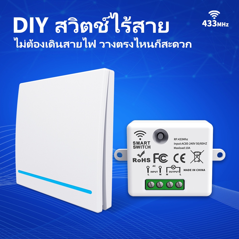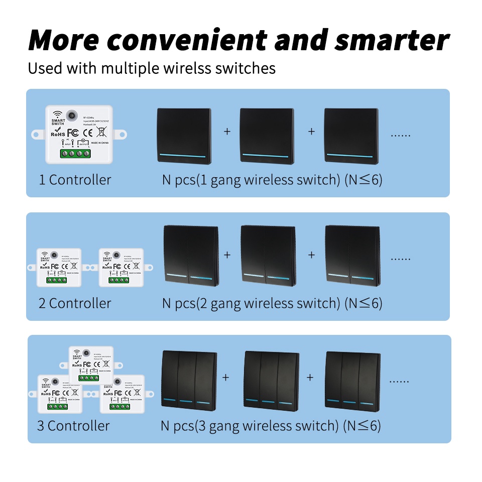 SIXWGH Smart switch สวิตช์ไร้สาย สวิตช์ไฟสวิตช์ไร้สาย, แผงสวิตช์ควบคุมระยะไกลไร้สาย RF433 wireless switch