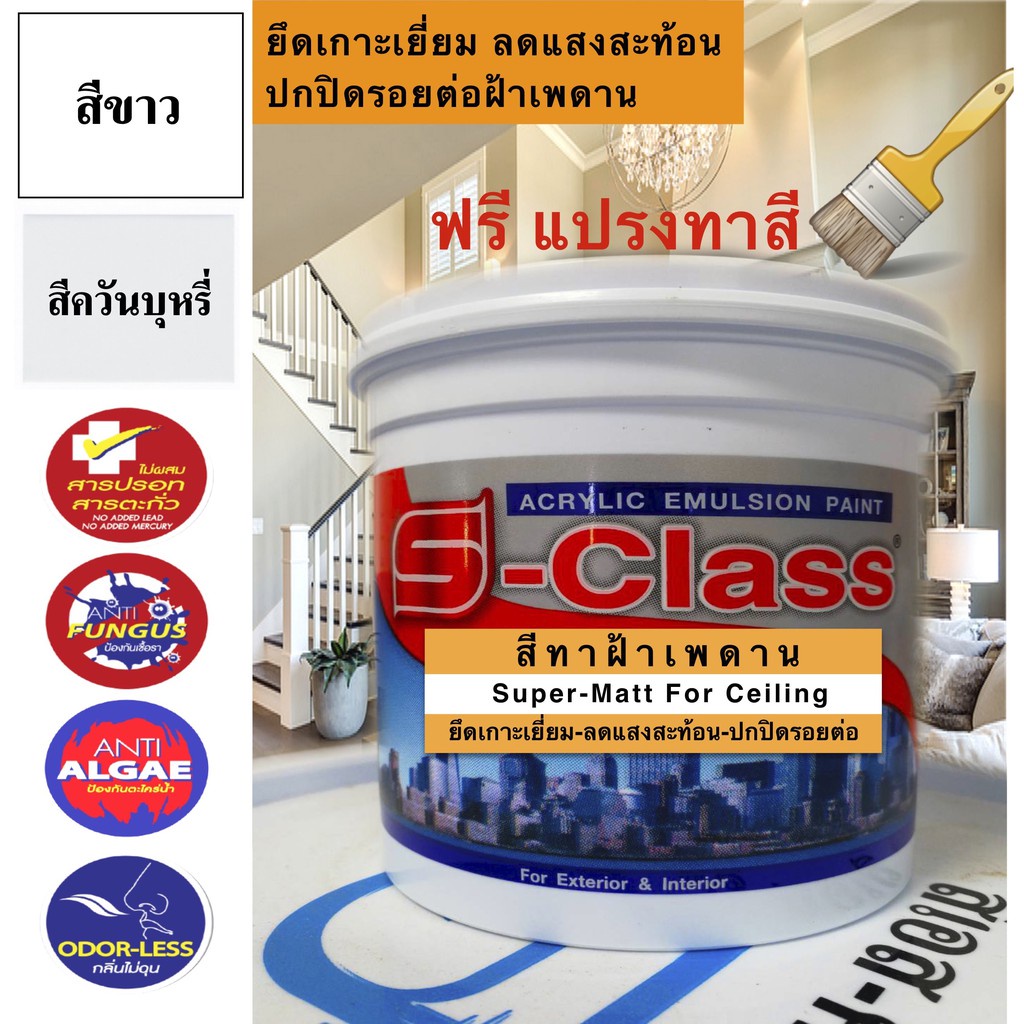 □สีทาฝ้าเพดาน เอสคลาส ชนิดด้าน 1/4 แกลลอน มี 2 เฉด (เทา,ขาว) แถมแปรงฟรี 1 ด้าม
