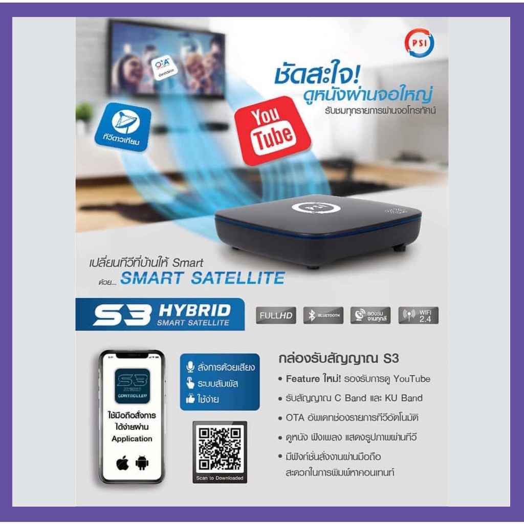 🔥ถูกสุด🔥 กล่องรับสัญญาณดาวเทียม PSI รุ่นS3 HYBRID (ดูทีวีผ่านดาวเทียม หรือไวไฟ ดูยูทูปควมคุมผ่านมือถือ)