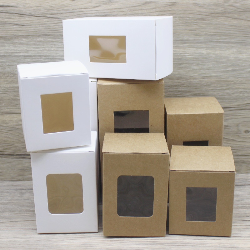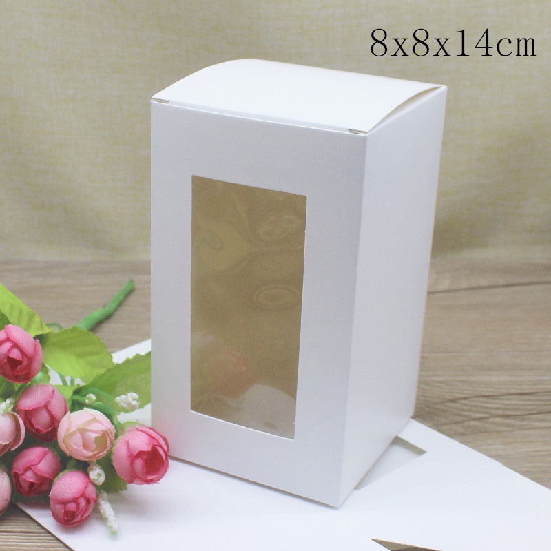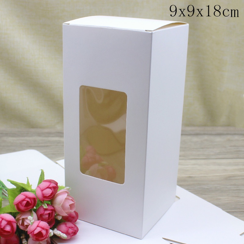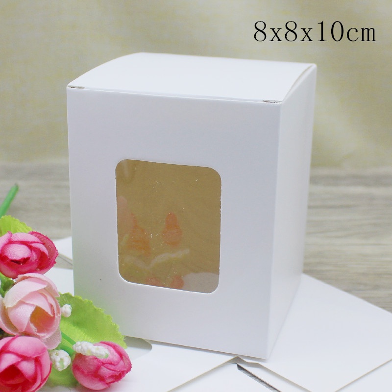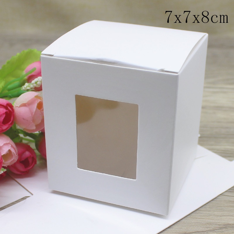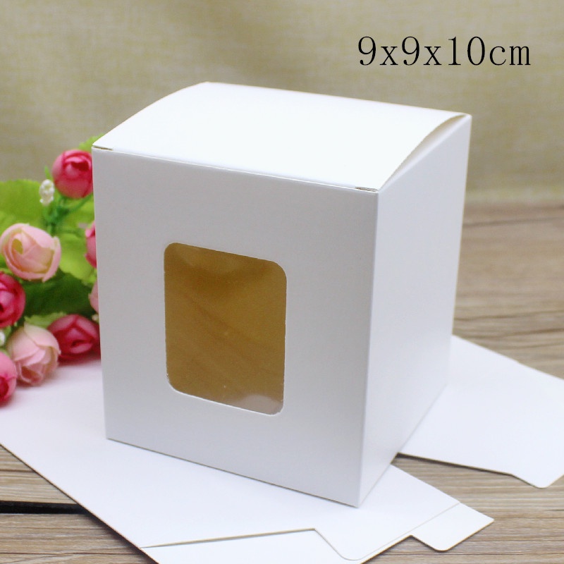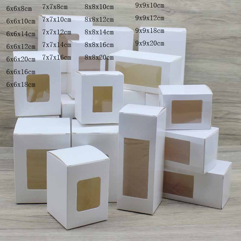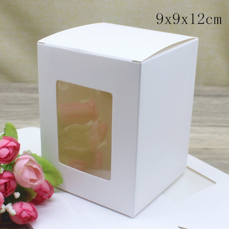 หลายขนาด 5 ชิ้นกล่องหน้าต่างสี่เหลี่ยม 6x6 / 7x7 / 8X8 / 9x9x สูงกระดาษคราฟท์กล่องสีขาวของขวัญงานแต่งงานกล่องโปรดปราน