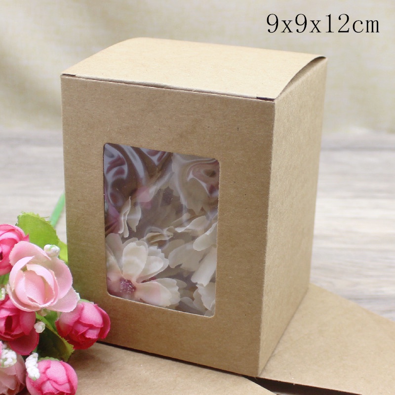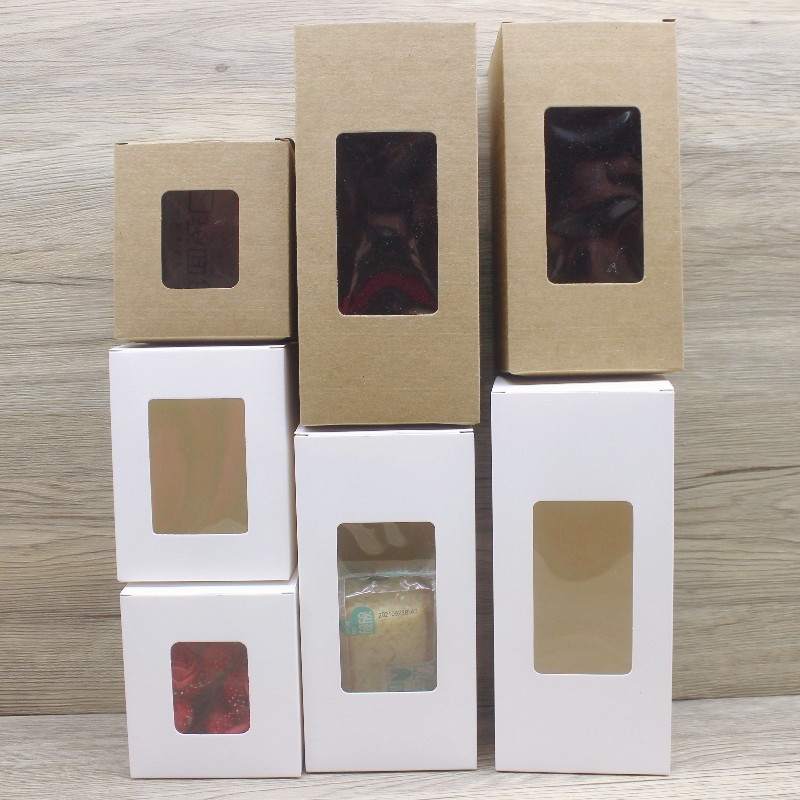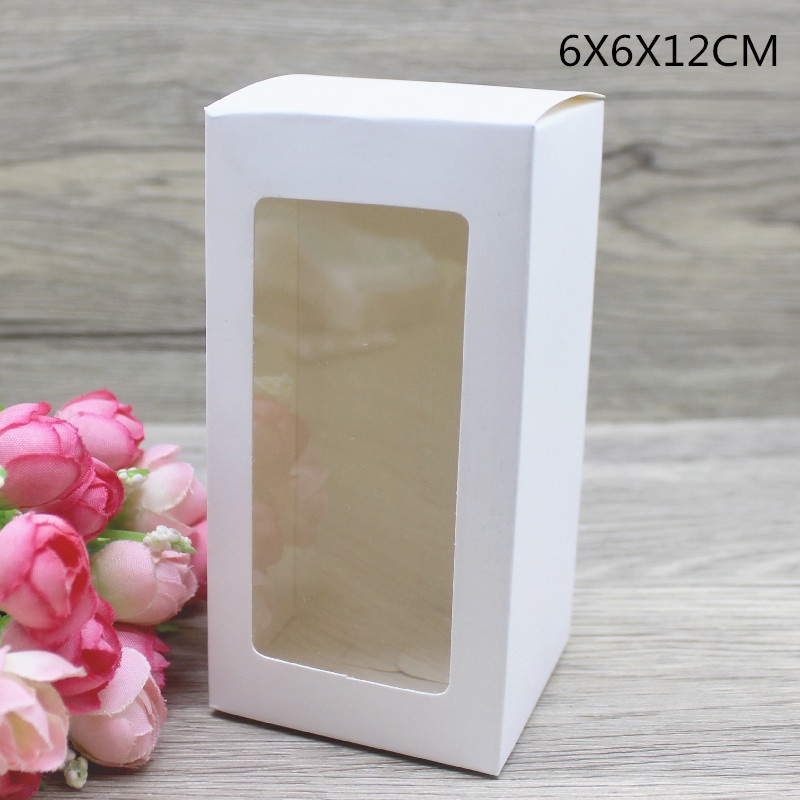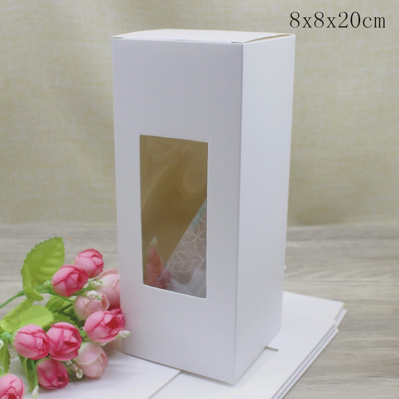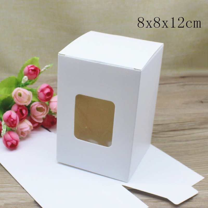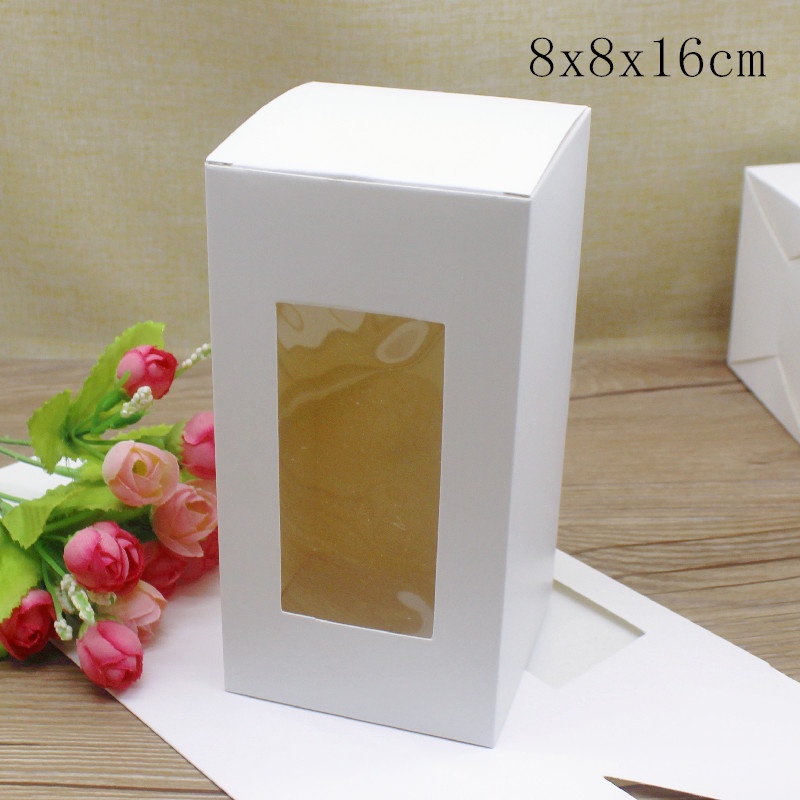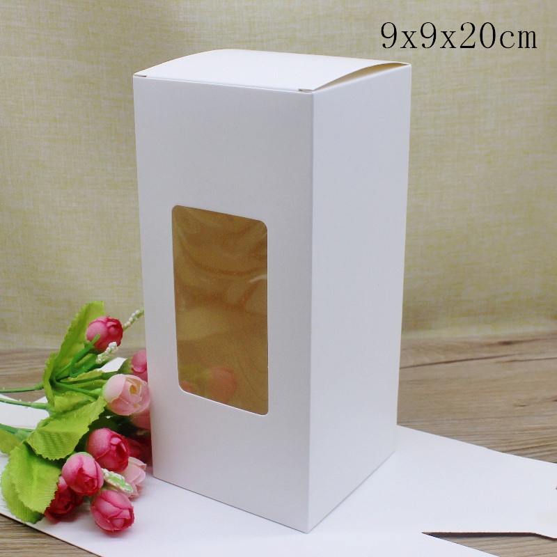 หลายขนาด 5 ชิ้นกล่องหน้าต่างสี่เหลี่ยม 6x6 / 7x7 / 8X8 / 9x9x สูงกระดาษคราฟท์กล่องสีขาวของขวัญงานแต่งงานกล่องโปรดปราน