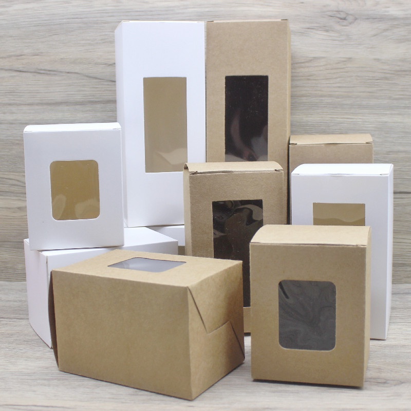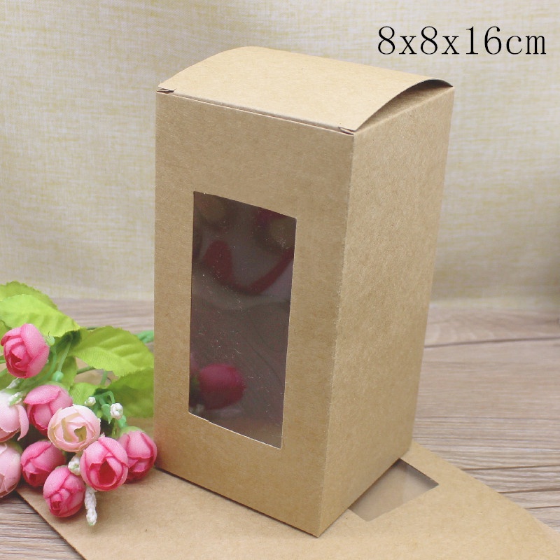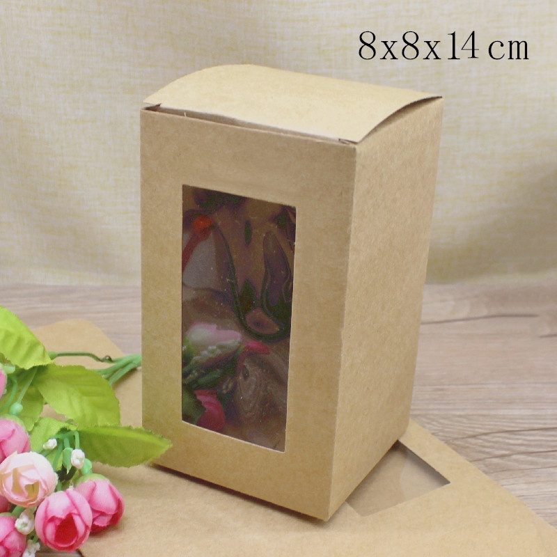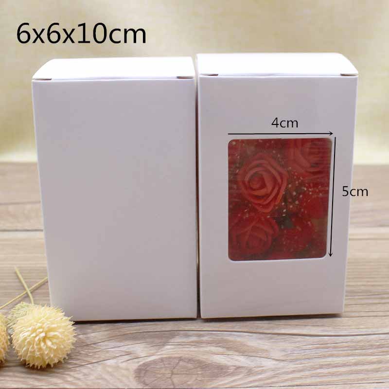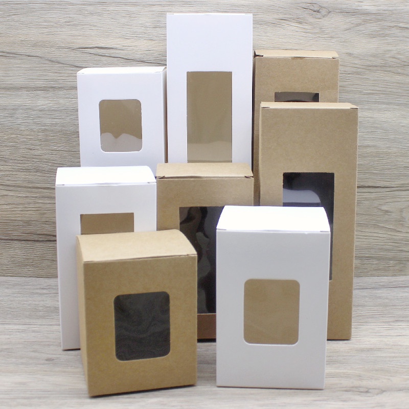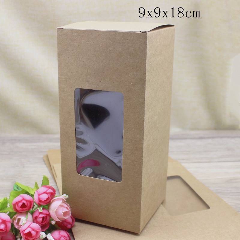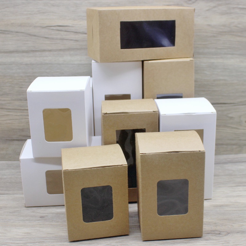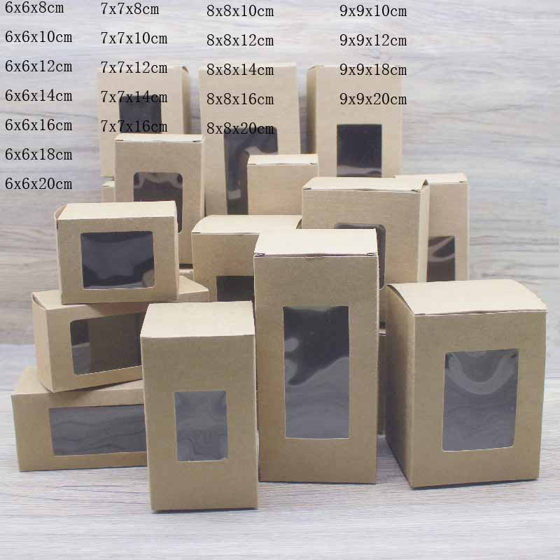 หลายขนาด 5 ชิ้นกล่องหน้าต่างสี่เหลี่ยม 6x6 / 7x7 / 8X8 / 9x9x สูงกระดาษคราฟท์กล่องสีขาวของขวัญงานแต่งงานกล่องโปรดปราน