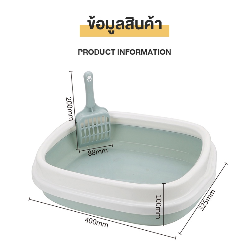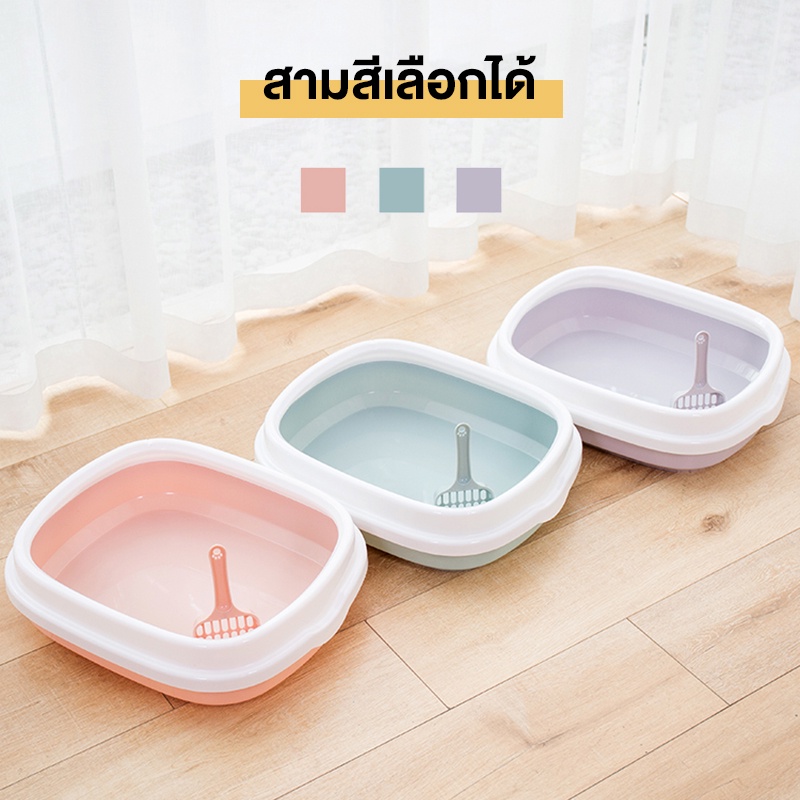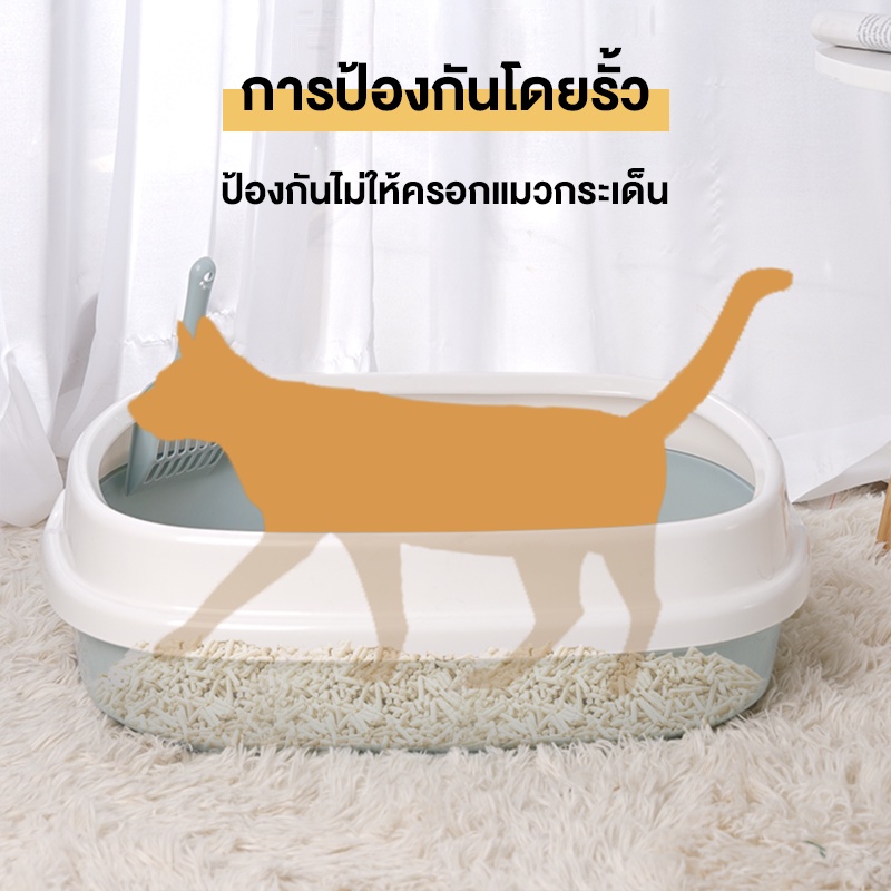 😺[Hipetime Official Shop] กระบะทรายแมวขอบสูง พร้อมตะแกรงดักทราย | มาพร้อมที่ตัก ใช้งานง่าย เหมาะสำหรับบ้านที่มีแมว