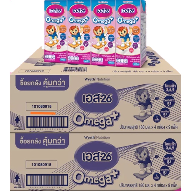 3ลัง S26 Omega Plus UHT (Formula 3) นมกล่อง เอส26 โอเมก้า พลัส ยูเอชที สูตร3 ยกลัง 3 (รวม 108 กล่อง)