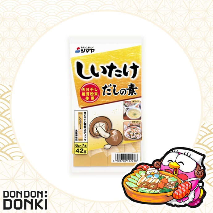 SHIITAKE DASHI NO MOTO" "ชิตาเกะ ดาชิ โนะ โมโตะ ผงปรุงรส รสเห็ดชิตาเกะ น้ำหนักสุทธิ 6กรัม 7ชิ้น