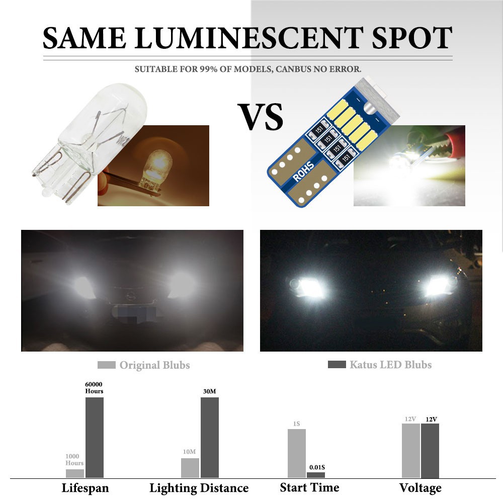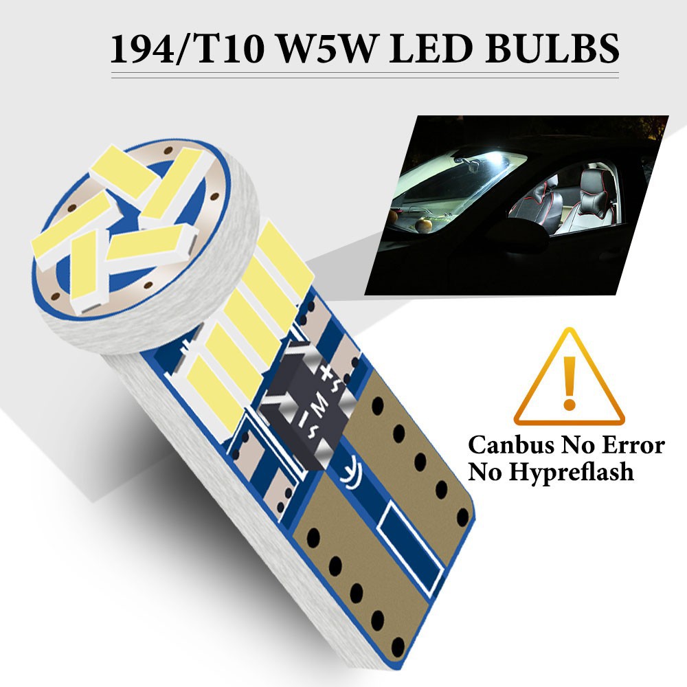 หลอดไฟเพดาน ไฟหรี่ w5wT10 canbus 15SMD 3014smd ขั้วT10 194 168 DC12V [2 ชิ้น]