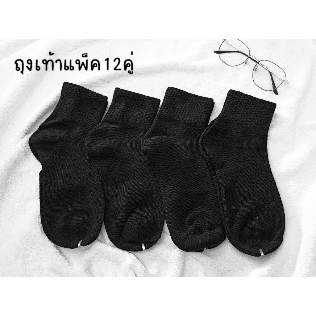 [แพ็ก12คู่] คุ้ม 📌ถุงเท้าทำงาน ถุงเท้าข้อยาว สีพื้น