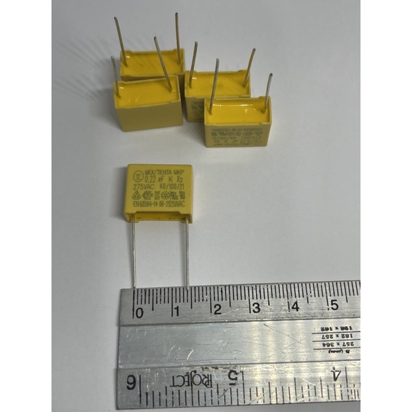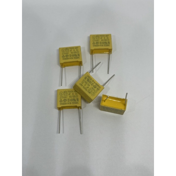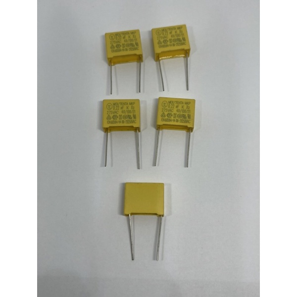 0.22UF 275VAC 220NF คาปาซิเตอร์ ขาห่าง15มิล 0.22UF 275V x2(แพ็คละ10ตัว)