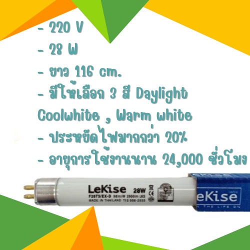 หลอดไฟ T5 28W LeKise fluorescent หลอดฟลูออเรสเซนต์ (หลอดผอม) แพ็ค 4 หลอด 114.5 cm. ไม่รวมขาพิน