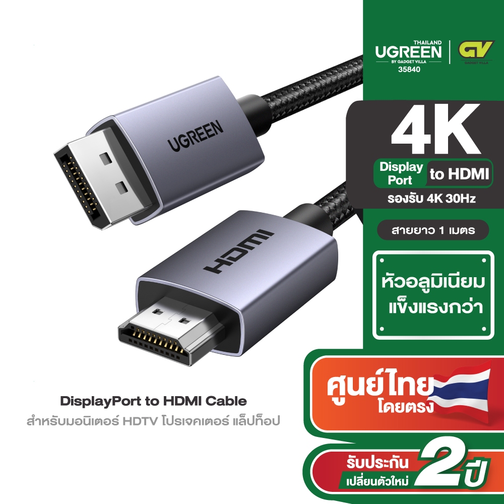 UGREEN รุ่น DP125 สายเคเบิลไนล่อนถัก DisplayPort Male to HDMI รองรับ 4K 30Hz สําหรับมอนิเตอร์ HDTV โปรเจคเตอร์ แล็ปท็อป