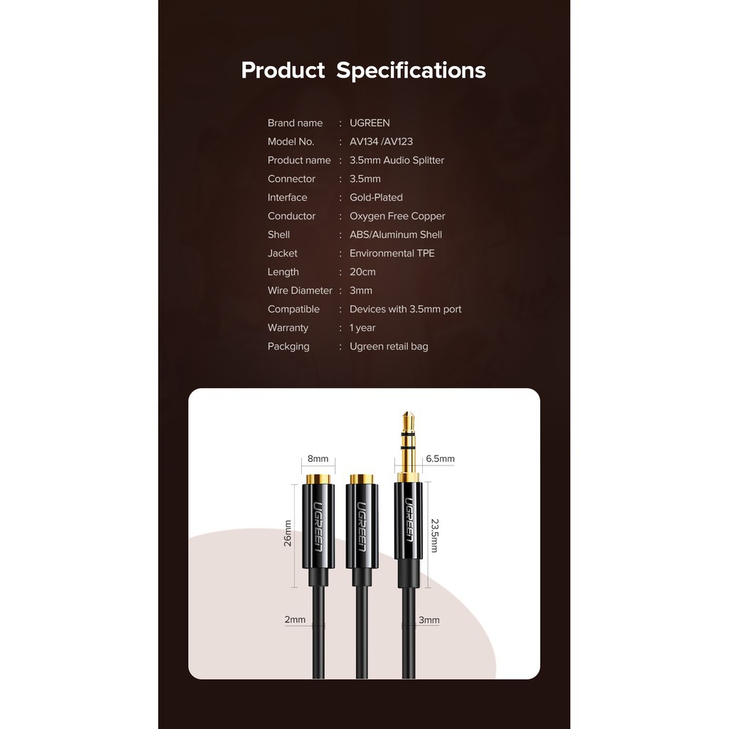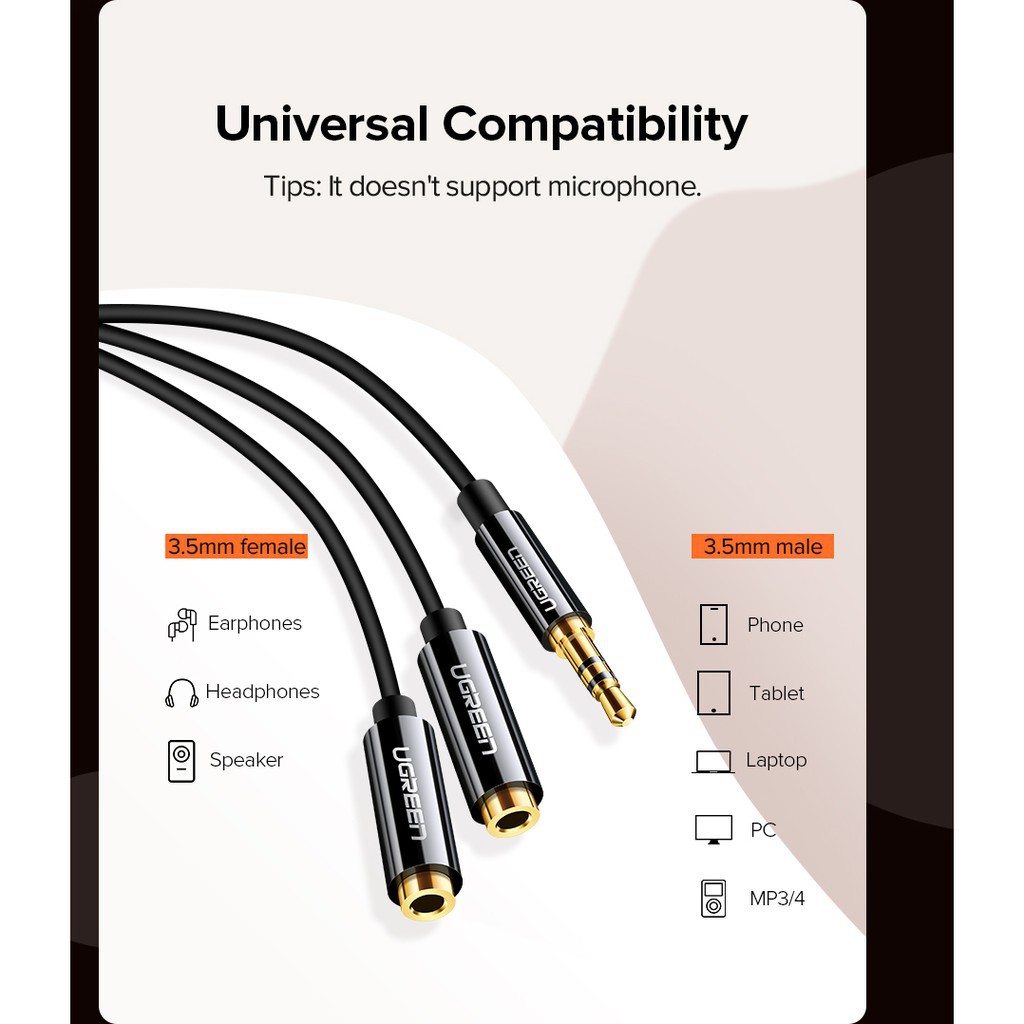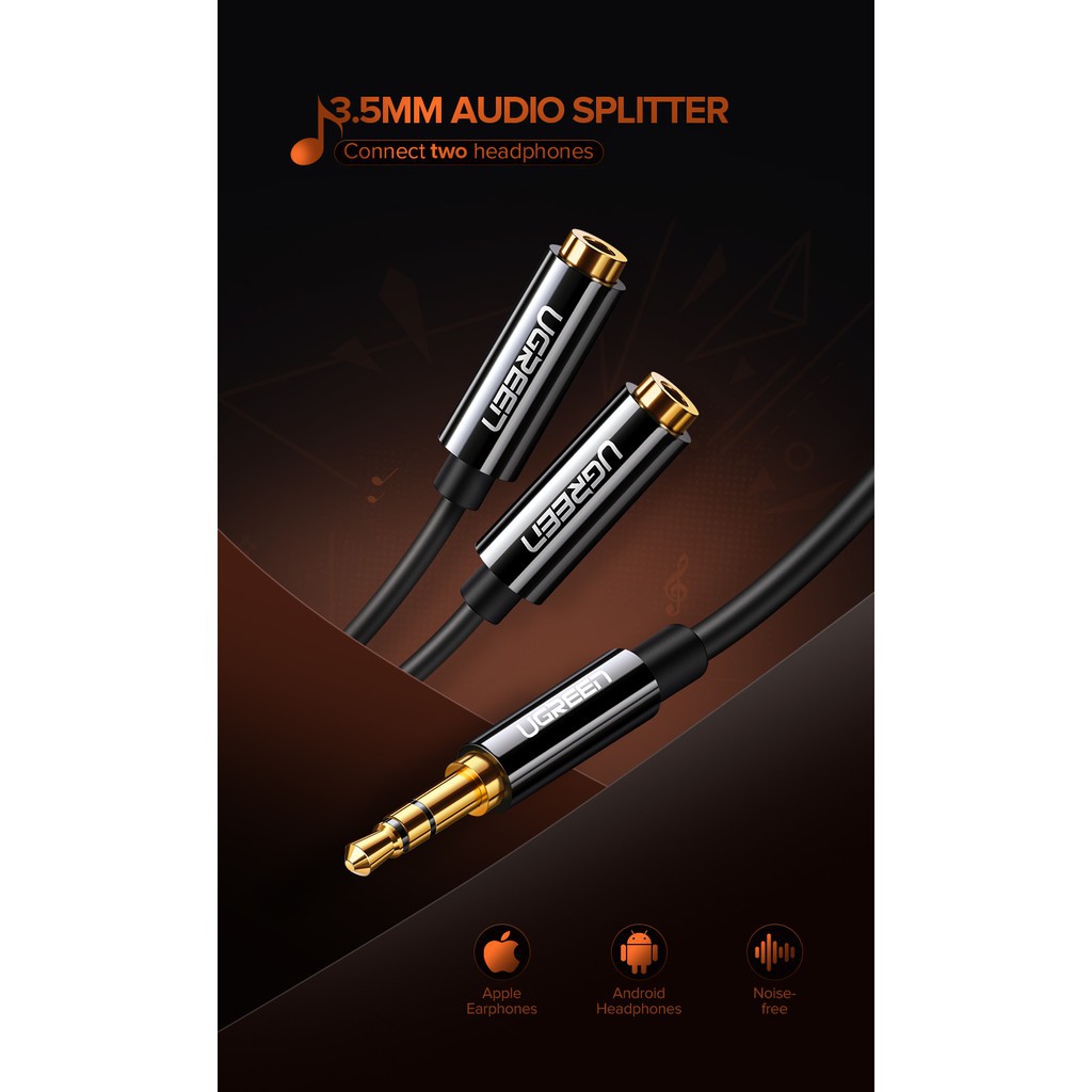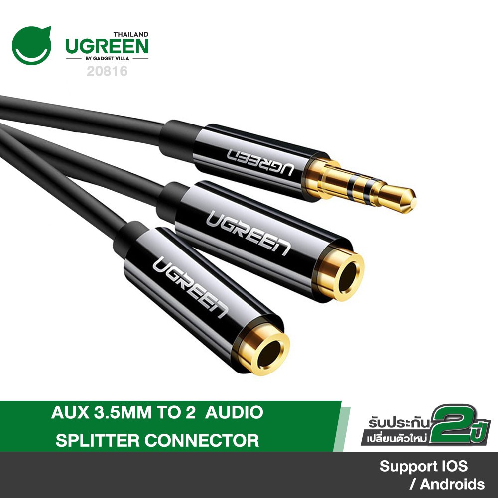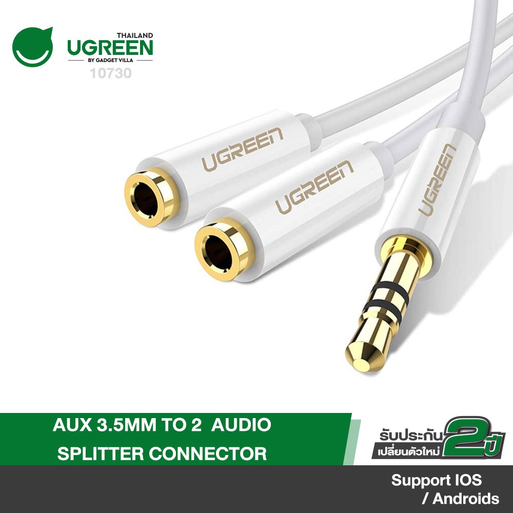 UGREEN รุ่น AV134 สายหูฟัง AUX 3.5mm Male to 2 Female Audio Splitter Connector หัวต่อชุบทอง