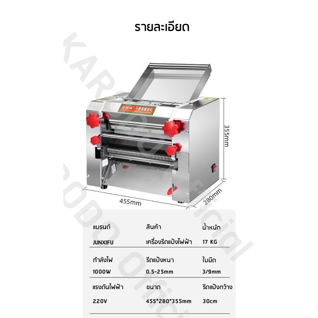 เครื่องรีดแป้งไฟฟ้า เครื่องตัดเส้น หัวตัดสแตนเลส รุ่น FKMZ-300 ปรับความหนาได้ 3/9 MM (รีดแป้งแบบไม่ต้องนวดเป็นก้อน)