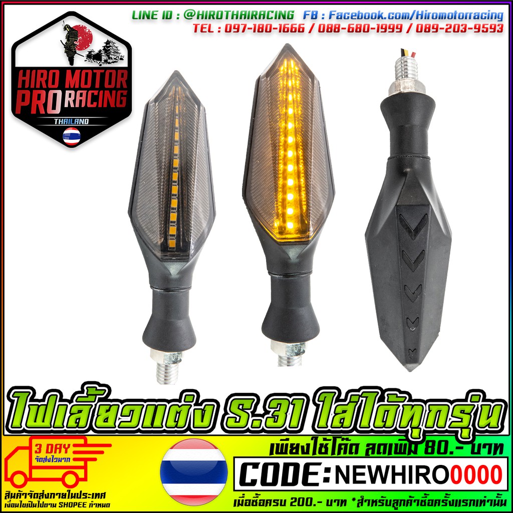 ไฟเลี้ยวแต่ง HIRO S.31 (ไฟวิ่งในตัว ไม่ต้องใช้รีเรย์) ราคาต่อคู่