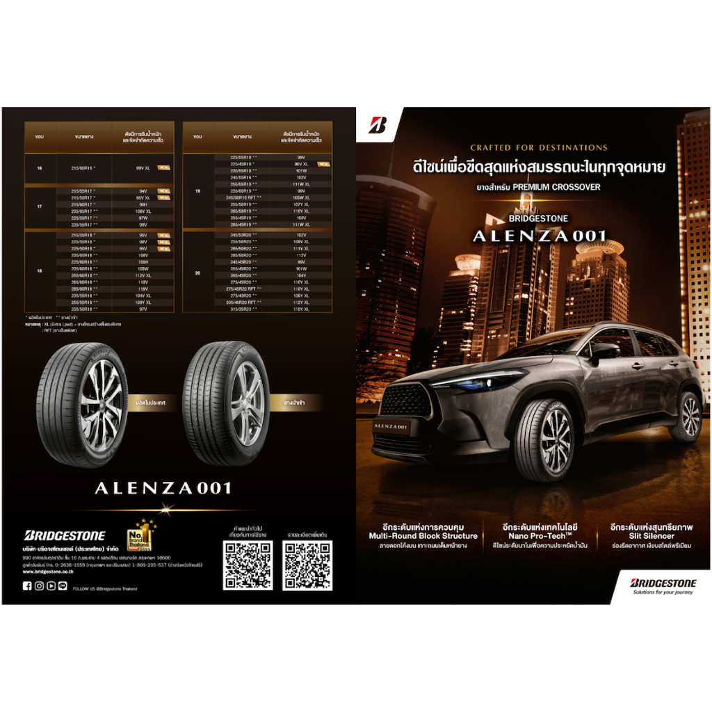 (ส่งฟรี) BRIDGESTONE 225/55R18 รุ่น ALENZA 001 ยางใหม่ ปี2025 (1เส้น) มีรับประกัน แถมจุ๊บลม ขอบ18 : 225 55R18 AL001