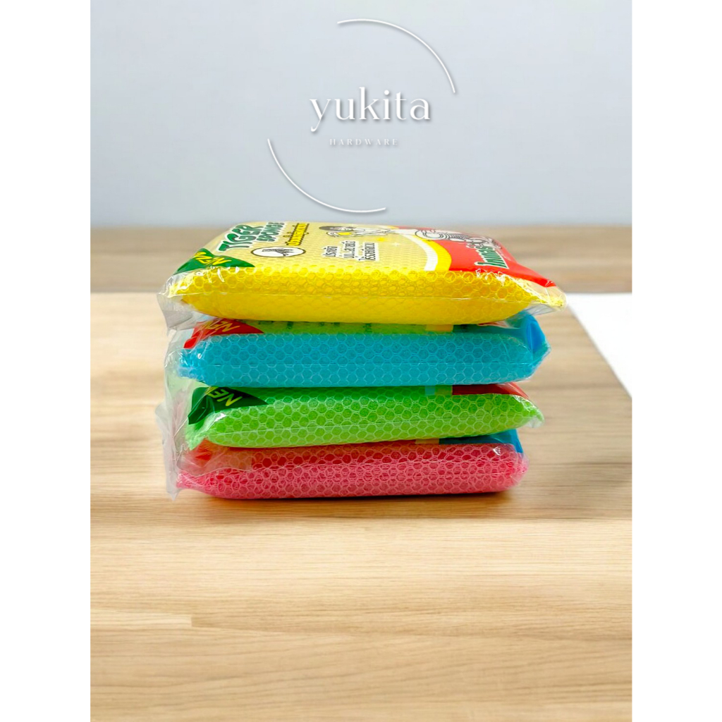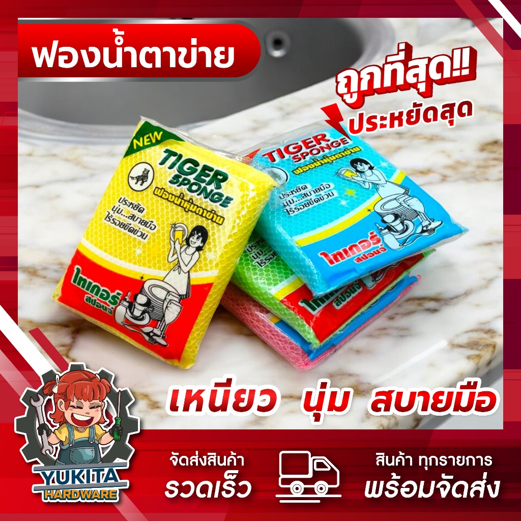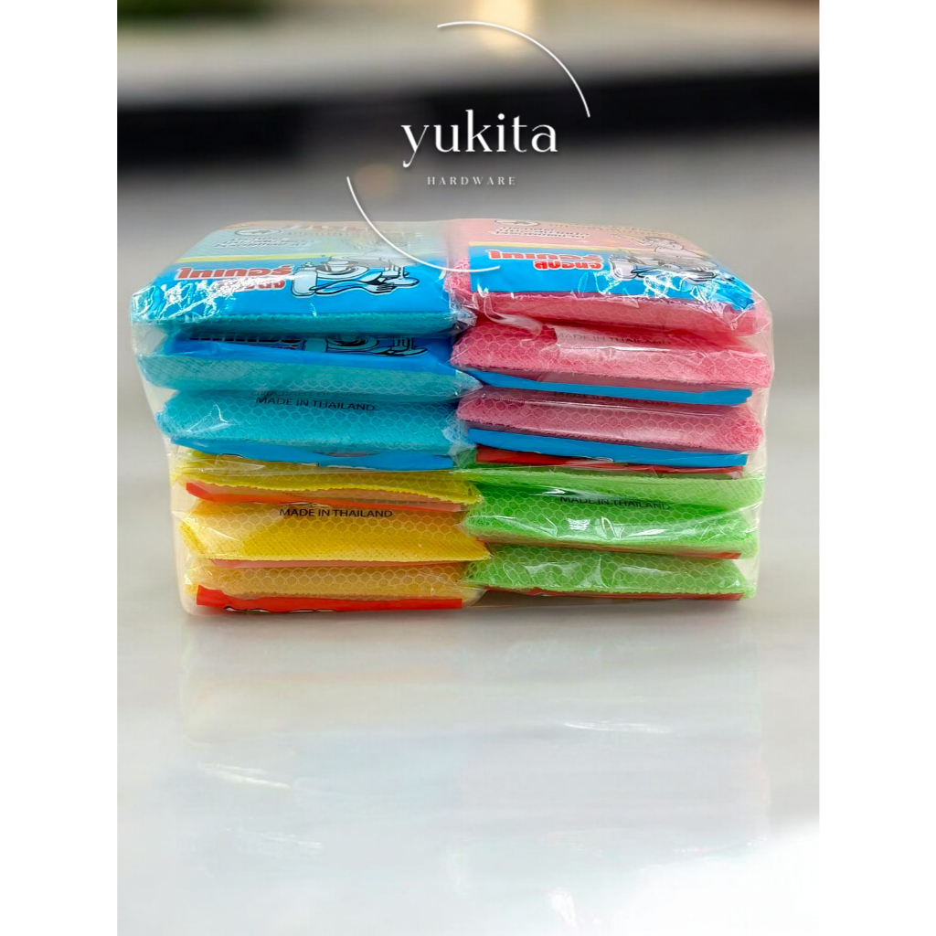 (ยกแพ็ค12ชิ้น) ฟองน้ำล้างจาน หุ้มตาข่าย ฟองน้ำล้างจาน ทำความสะอาด ครัวเรือน