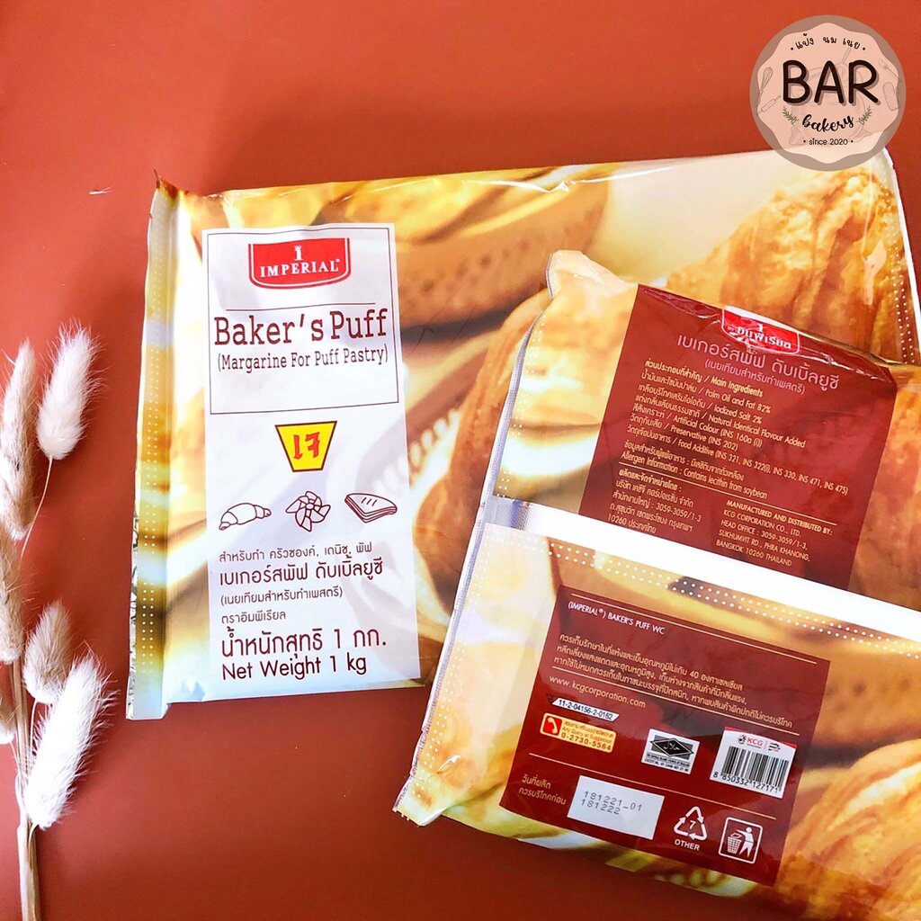 เบเกอร์สพัฟ ดับเบิ้ลยูซี ตราอิมพีเรียล ขนาด 1 กิโลกรัม เนยเทียมสำหรับทำเพสตรี Margarine For Puff Pastry Baker's Puff 1kg